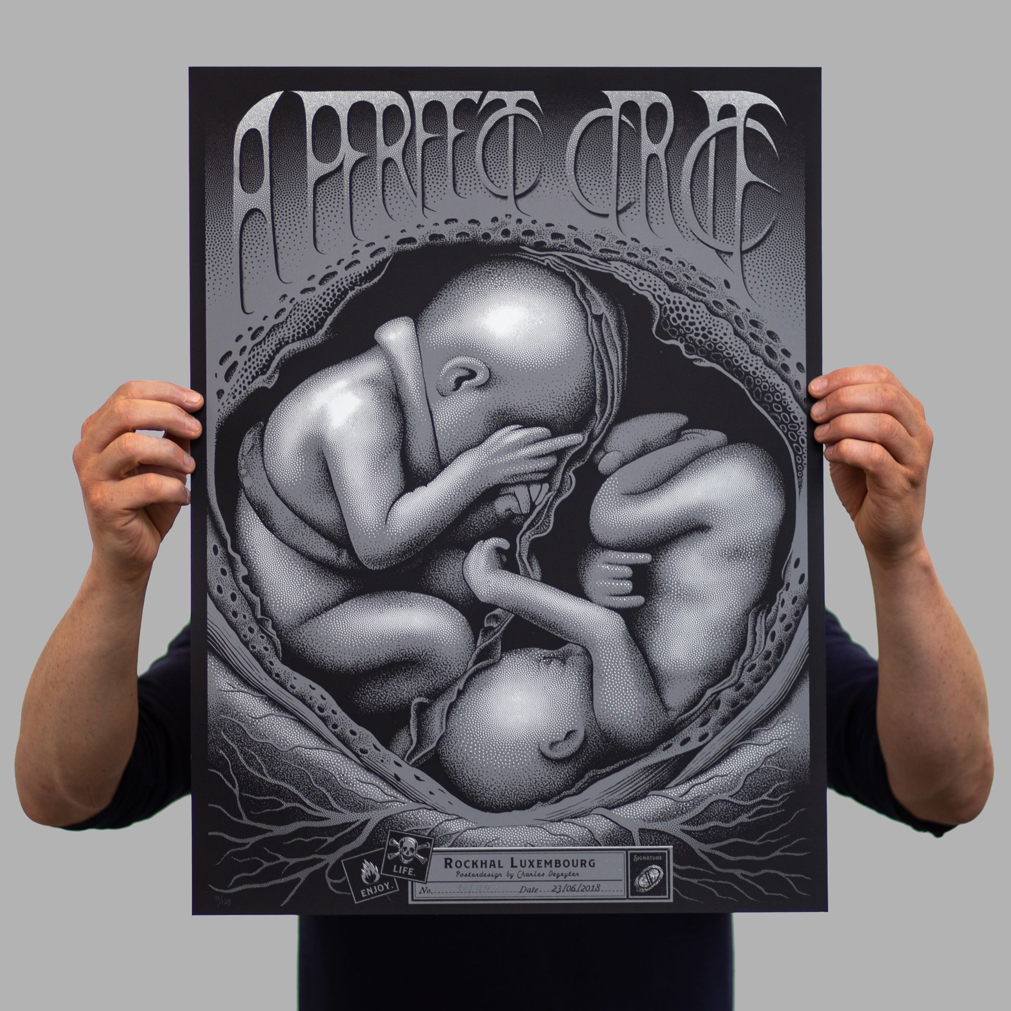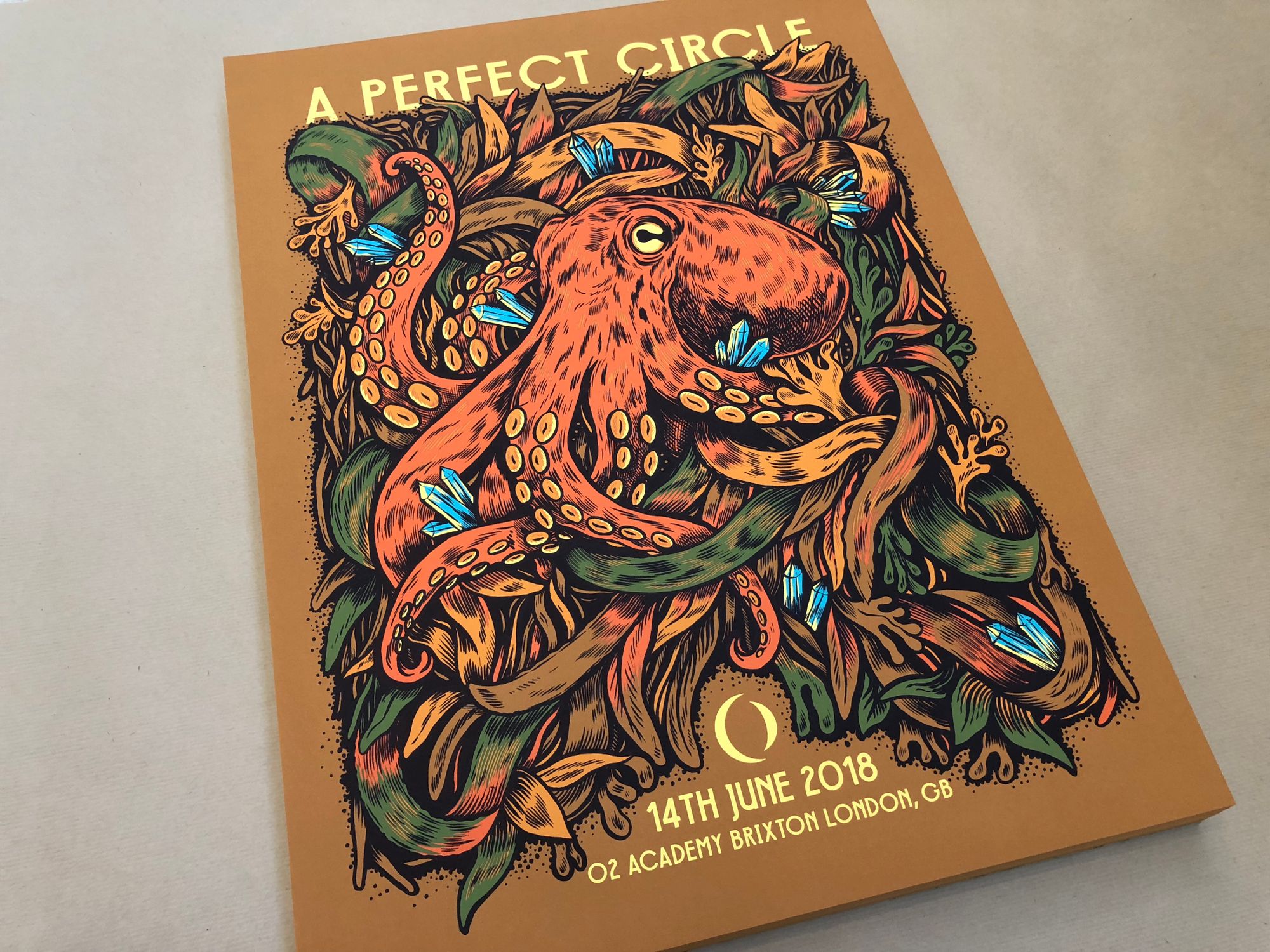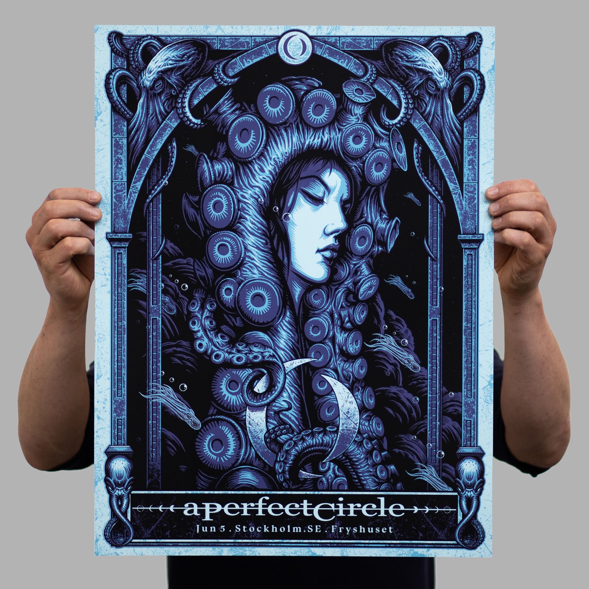 There is a huge scene in the US for collectable gig posters, and it’s been steadily growing on this side of the Atlantic, in the UK and Germany especially. It’s always an exciting prospect when an American band tours Europe because the desire for gig posters comes with them, and in the case of A Perfect Circle’s tour, they really went to town with commissioning artists for each and every date.