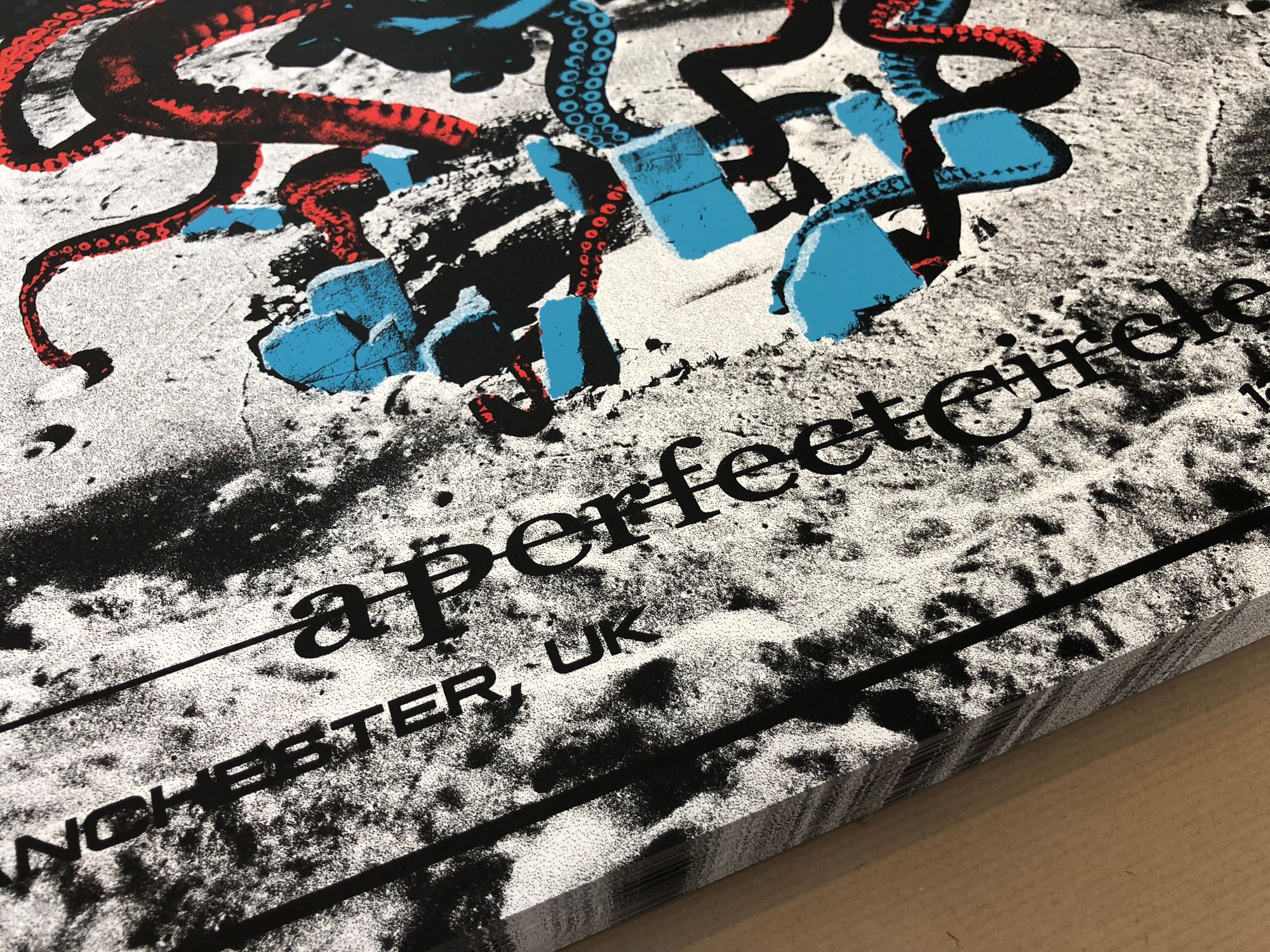 As you’ll no doubt know, A Perfect Circle are a rock supergroup, formed in 1999 by Billy Howerdel and Tool vocalist Maynard James Keenan. Perhaps less well known are how enthusiastic their fans are for screenprinted concert posters, and how gracious the band are in giving their fans what they want!