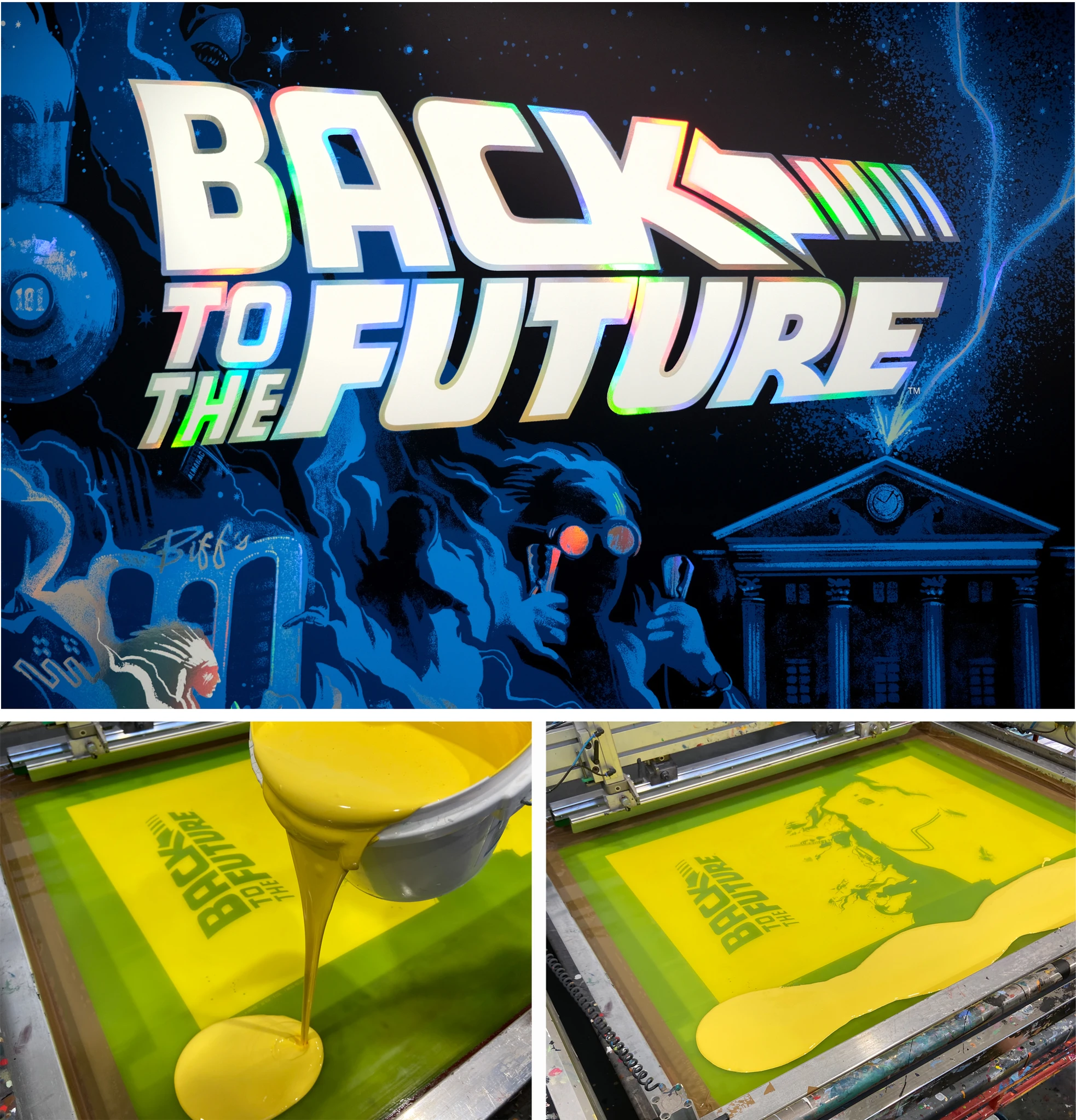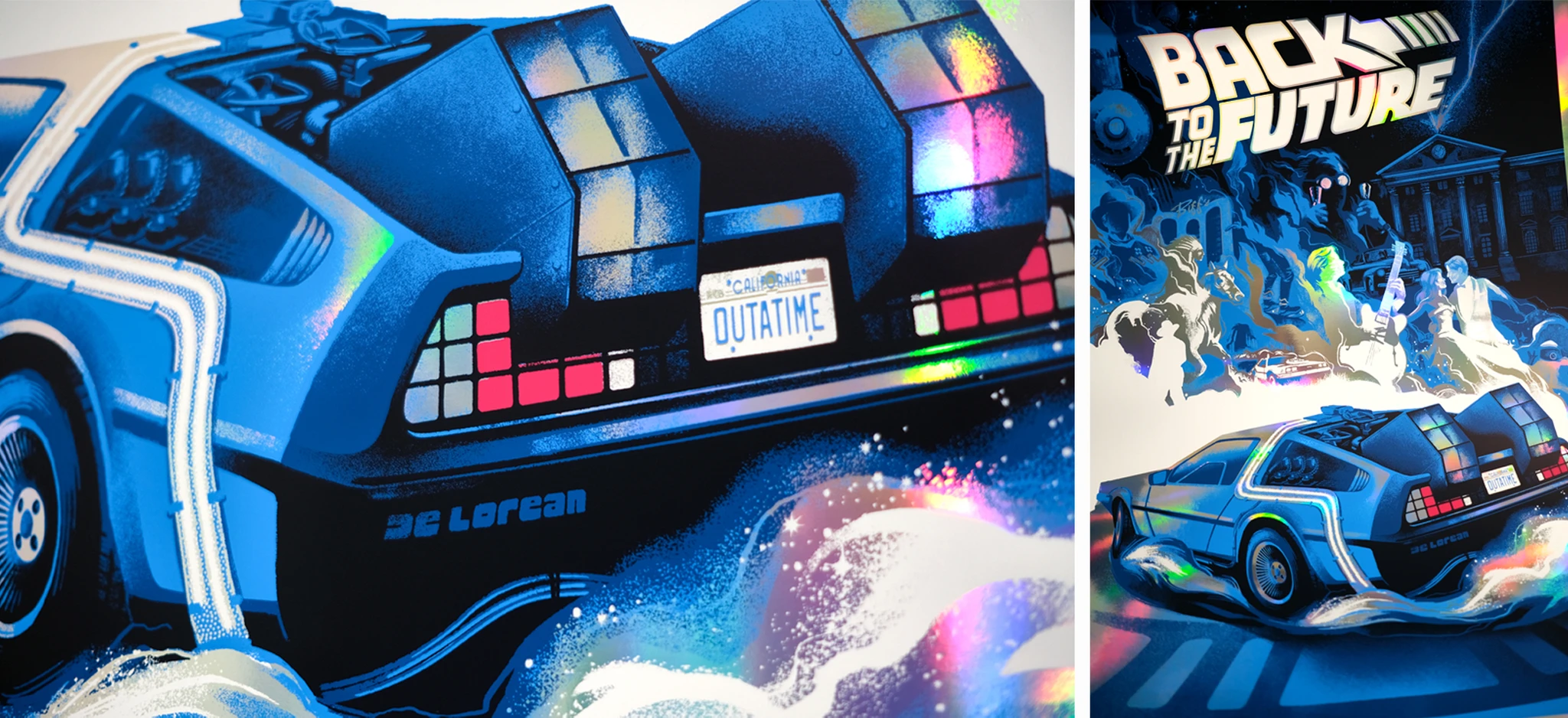'Back to the Future' was screen printed at 24"x36" and in 5 cols. There was a regular edition of 200+AP's and variant rainbow foil edition of 100+AP's.