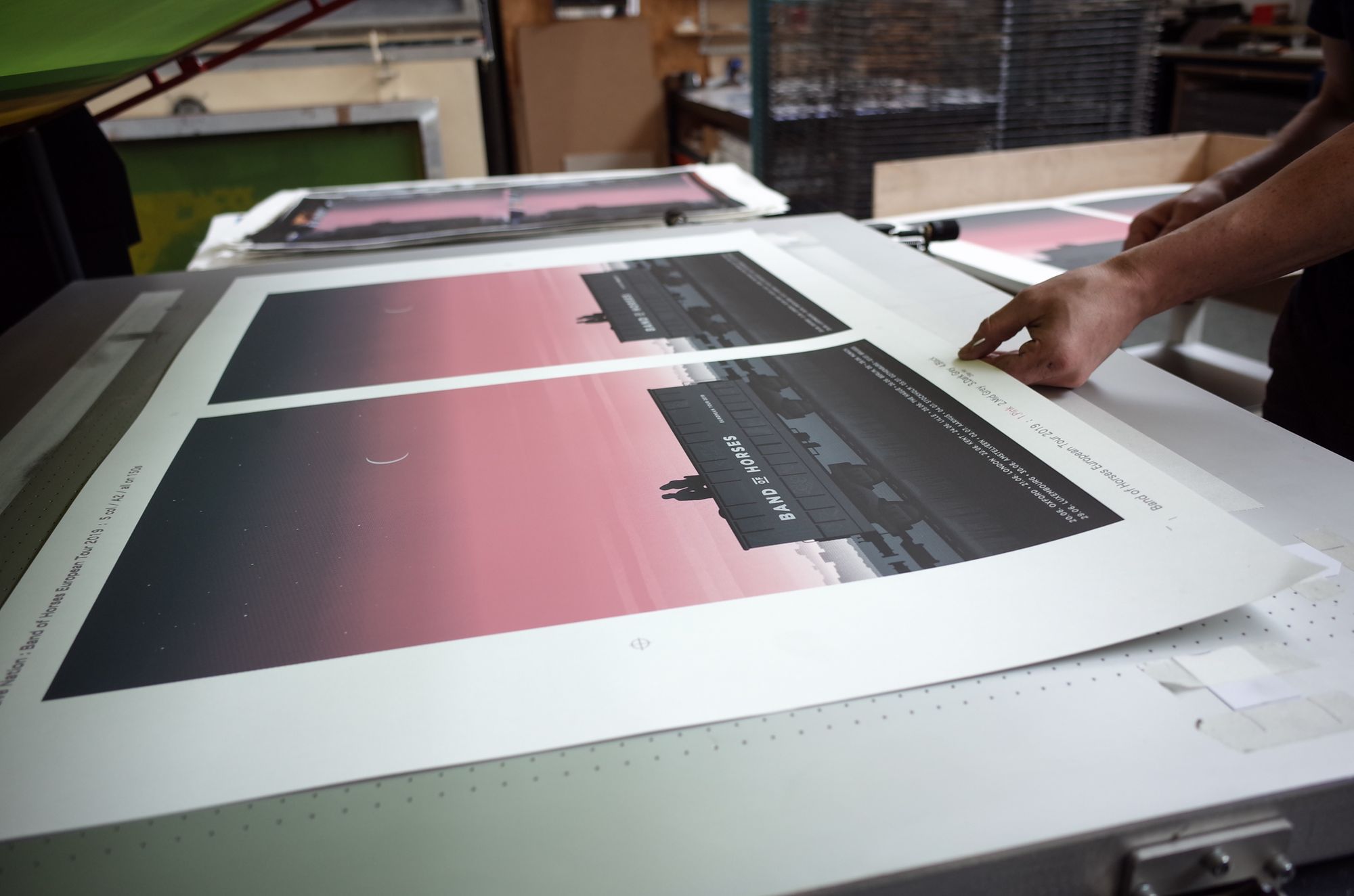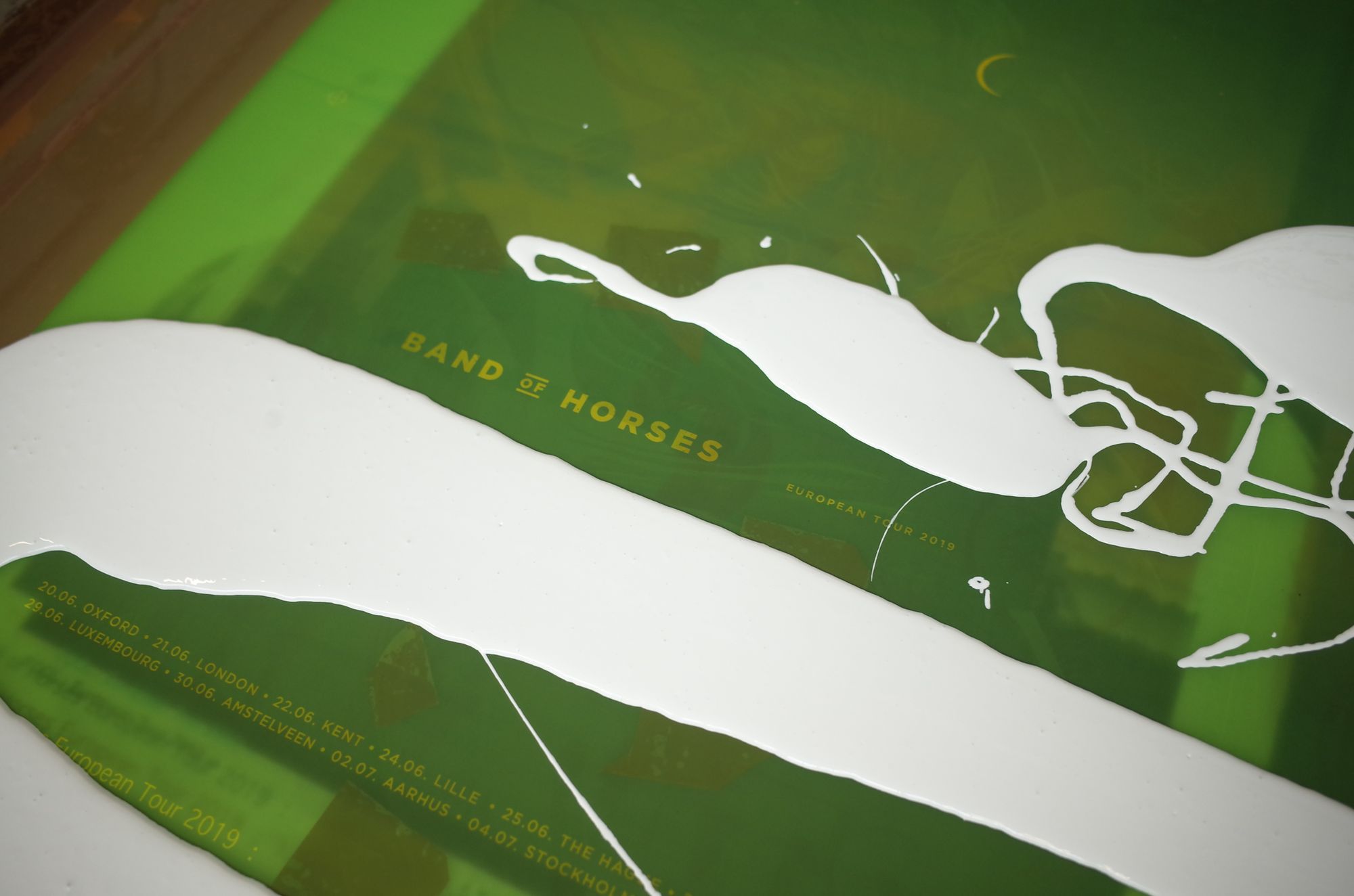 Band Of Horses are here playing three concerts in the UK, before heading off to tour the rest of Europe. For sale on the tour will be these elegant posters, which we screen printed earlier this week at the White Duck Editions studio.