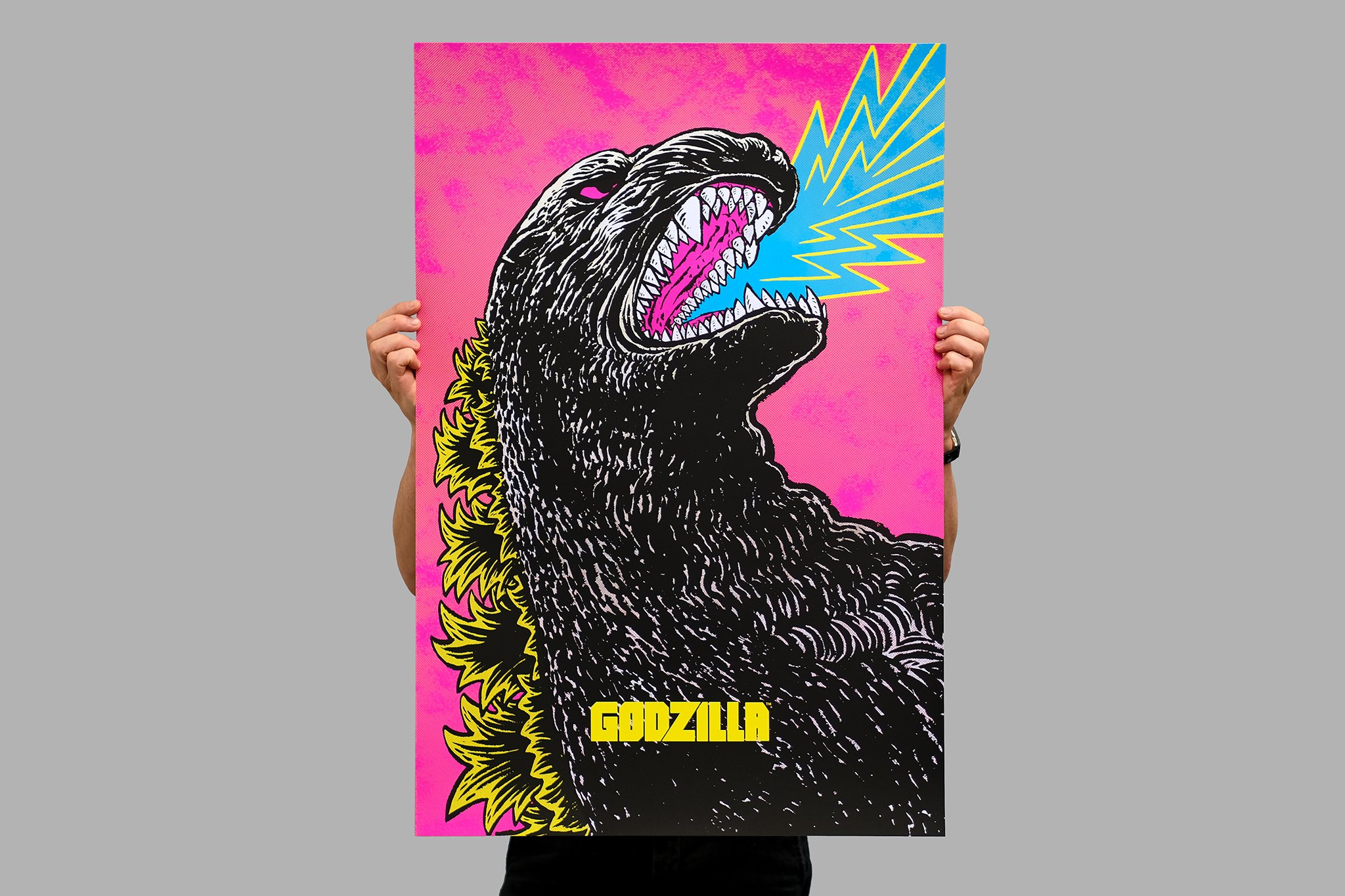 Although not technically a CMYK screenprint, Godzilla nods firmly in the direction of the process, and yet pulls off something rather beautiful instead — neither one nor the other, and instead a heady amalgam of artistic intention and print process.