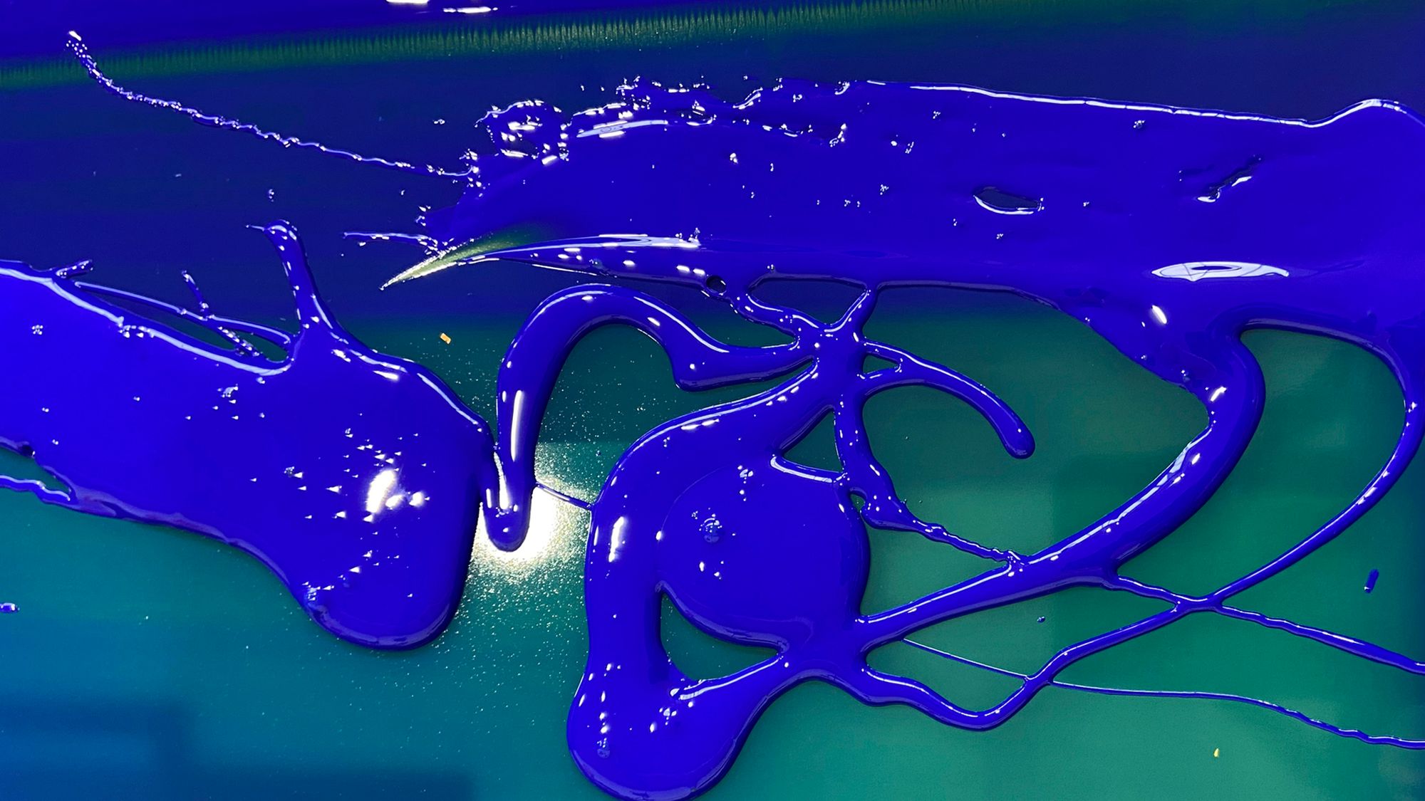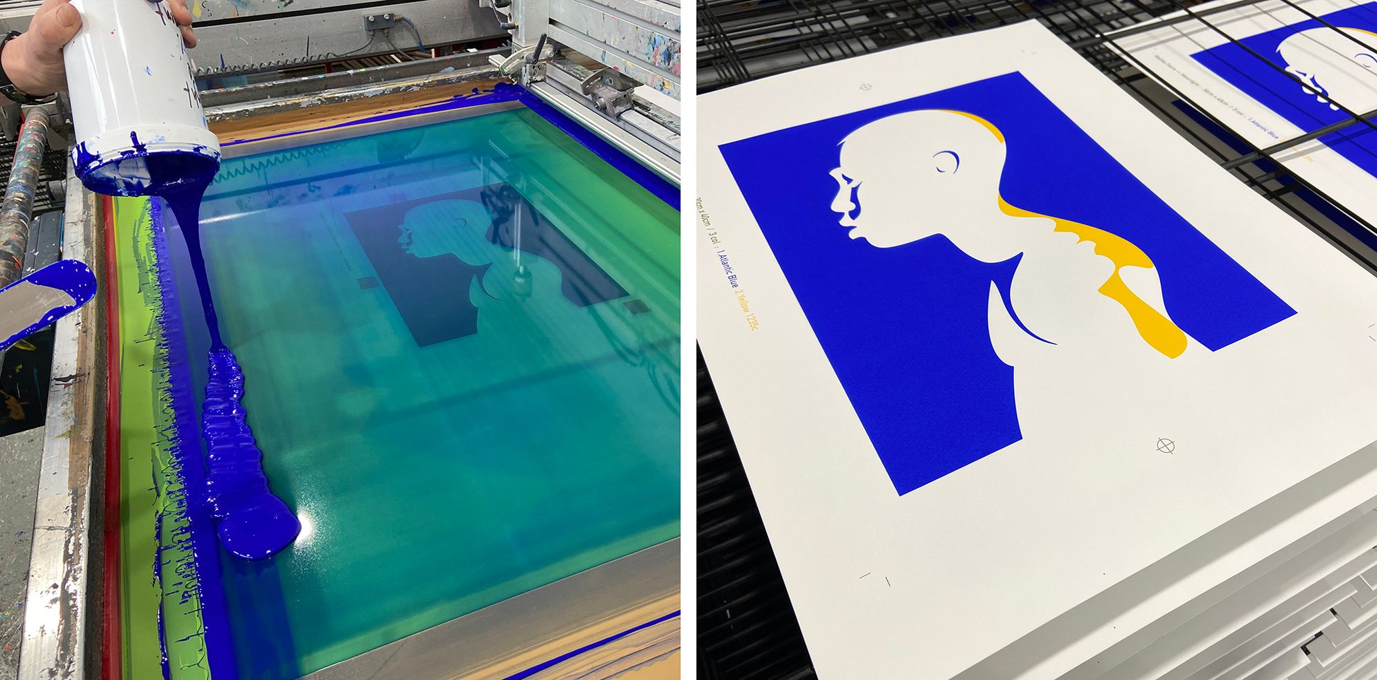 Some colours capture the imagination. They fascinate us and occupy our thoughts, and have the power to guide our actions. To say that all blue has this affect is perhaps to generalise, but one such blue hue, that for the last 60 years has spoken to the minds of many and guided with an indelible voice, is Yves Klein’s blue (or International Klein Blue). Many a long and thorough blog post could be written about this one blue, but for this post it is a great reference point for Malika’s work, and essentially it is Yves Klein’s dense vibrancy of blue that we have been striving to achieve when creating screen prints for this artist. By no means a straight forward task, but an objective that draws closer to a conclusion with each iteration.