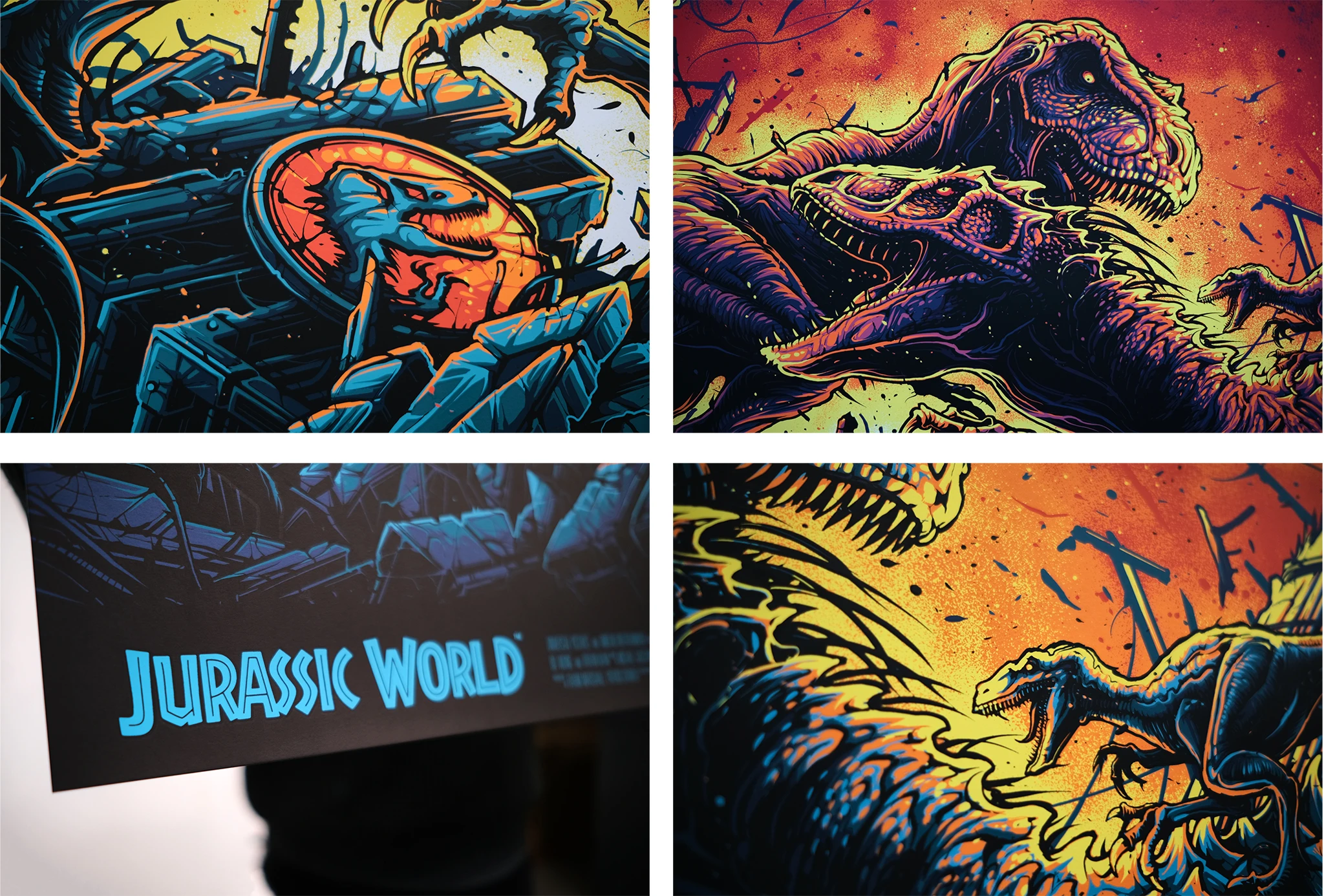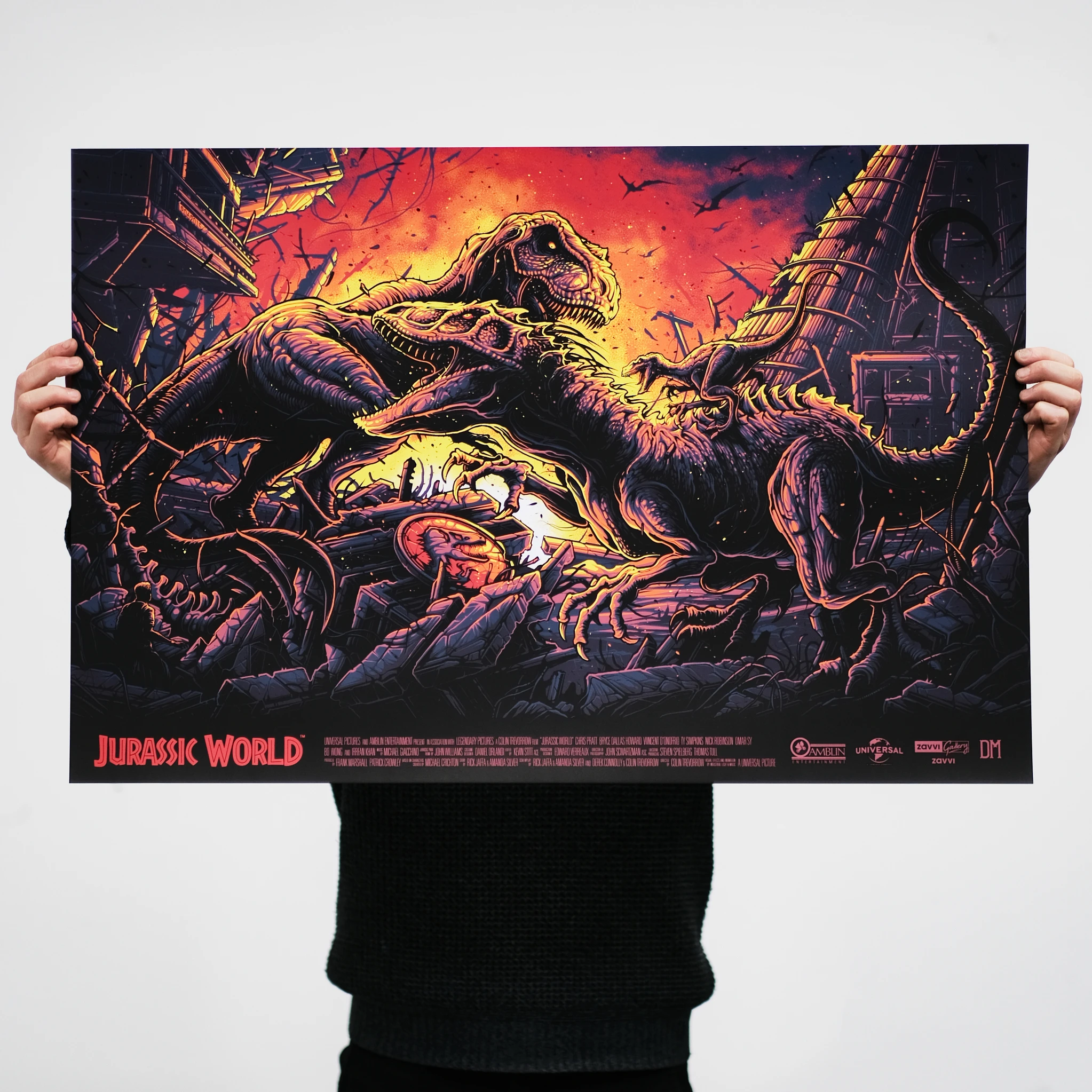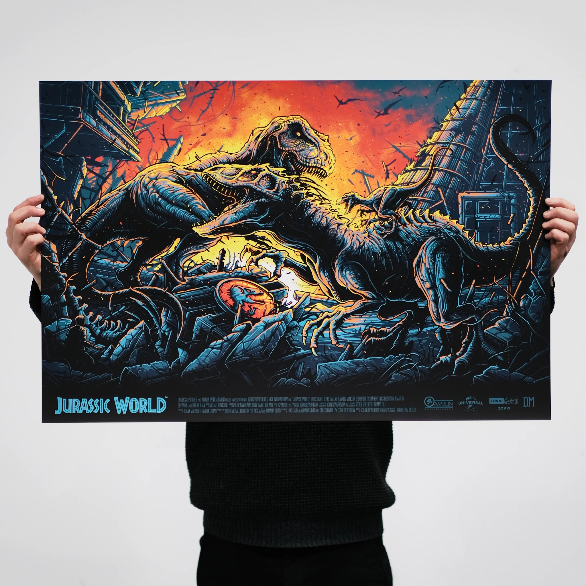 Jurassic World was screen printed at White Duck Editions in a 36”x24” regular edition of 150+AP’s and variant edition of 100+AP’s, both 7 colours on 300gsm Gmund Bauhaus paper.