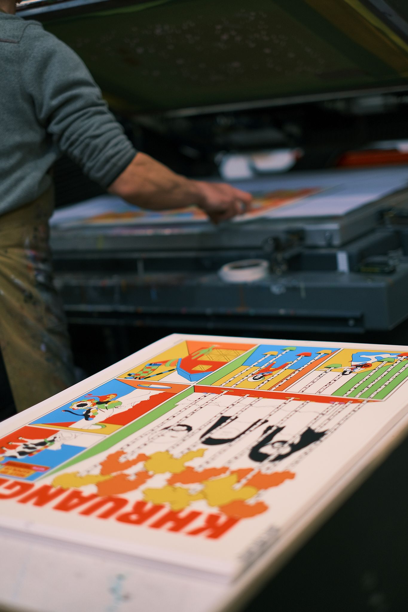 We worked with Murugiah in April of 2021, bringing to life in print his excellent Lake Shore Drive II (Night). On that occasion, the edition was comprised of a giclée print with screenprinted metallic gold embellishment.