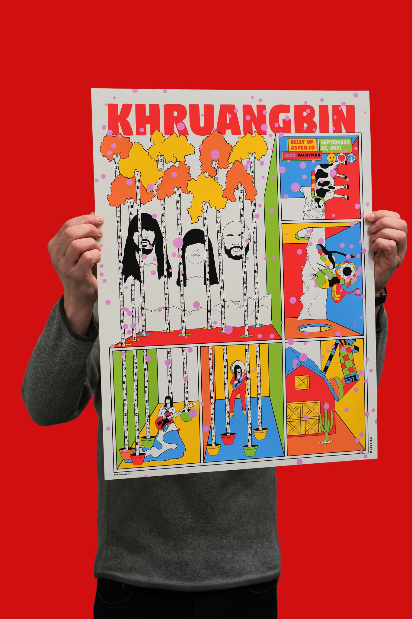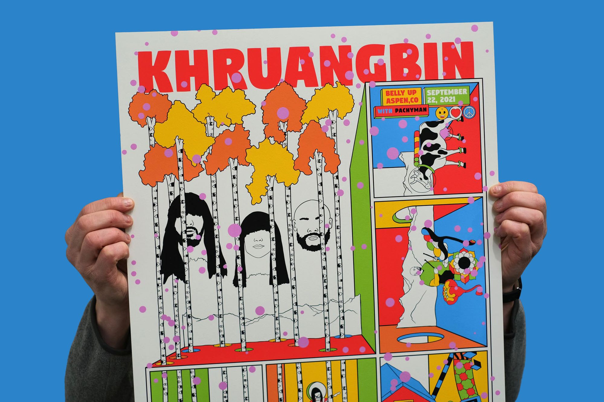 “The project came about when I got in touch with Khruangbin’s very cool bass player and all round extraordinaire, Laura Lee. We discussed what show would suit my super surreal style for a gig poster and she came to me with the Belly Up in Aspen.”