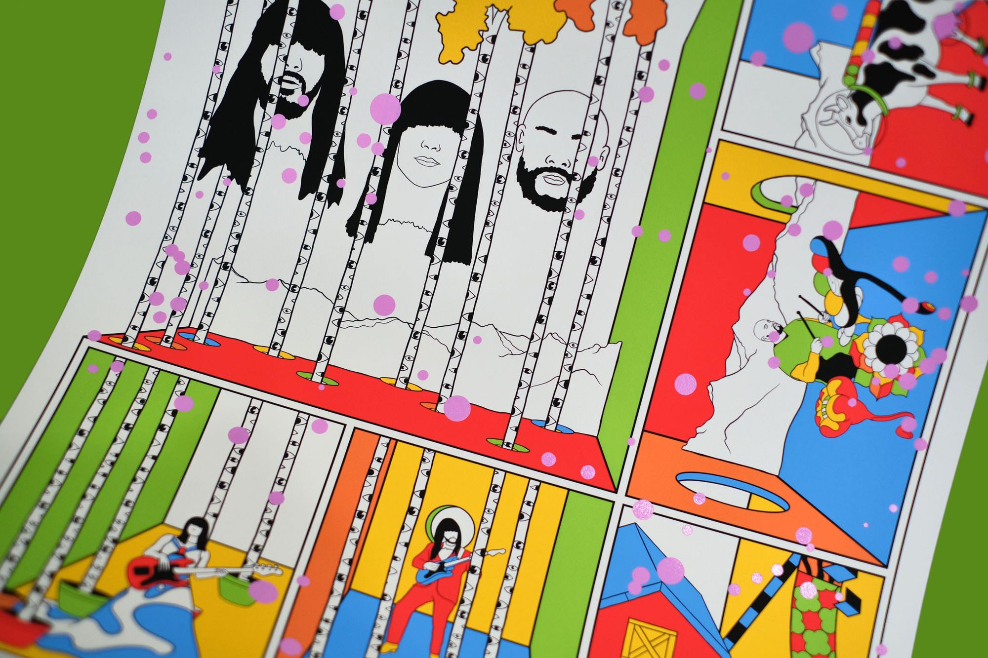 Murugiah’s poster was originally produced for the band’s show at Belly Up in Aspen, which took place in September of last year, where editions specific to the show were available. With this new release of the artwork, the artist has created an embellished version in a strictly limited edition of just 30 prints, which completes his artist proof allocation.