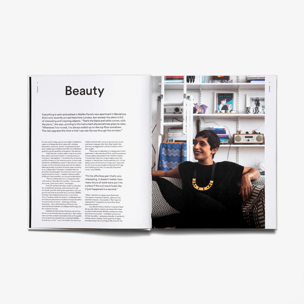 The monograph, published in the UK by Counterprint Books, presents the last 8 years of the artist’s work, and inside you’ll find a 216-page explosion of exquisite colour and finesse. It’s a tour-de-force showcase of Malika’s style, where the realms of ILLUSTRATION and ART are naturally as one.