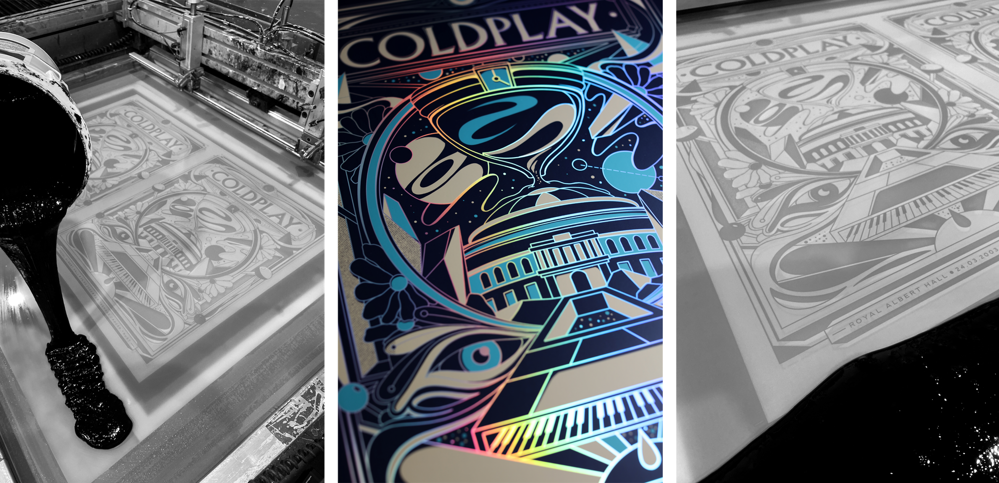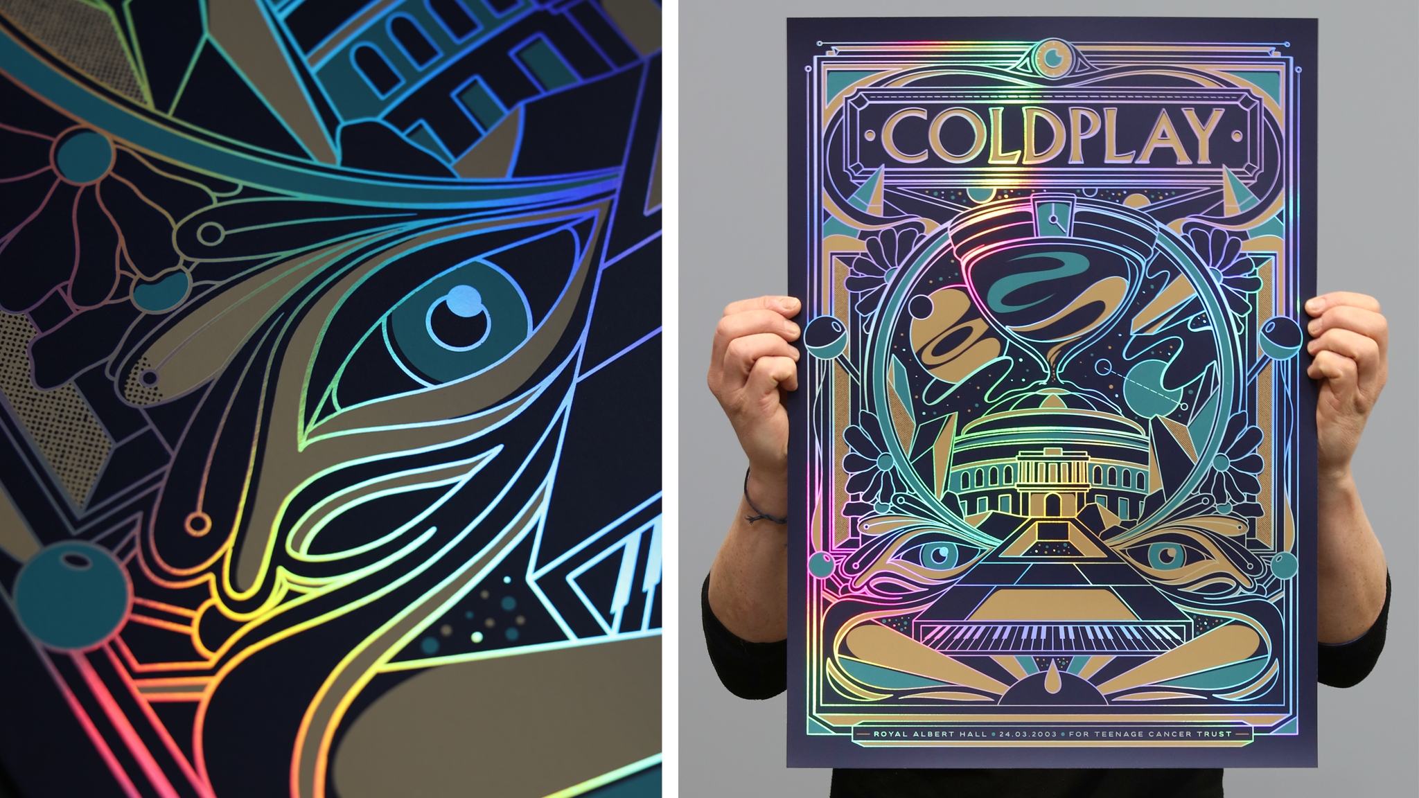 Matt Glasby brings holographic energy to his commemorative Coldplay live at the Royal Albert Hall poster.