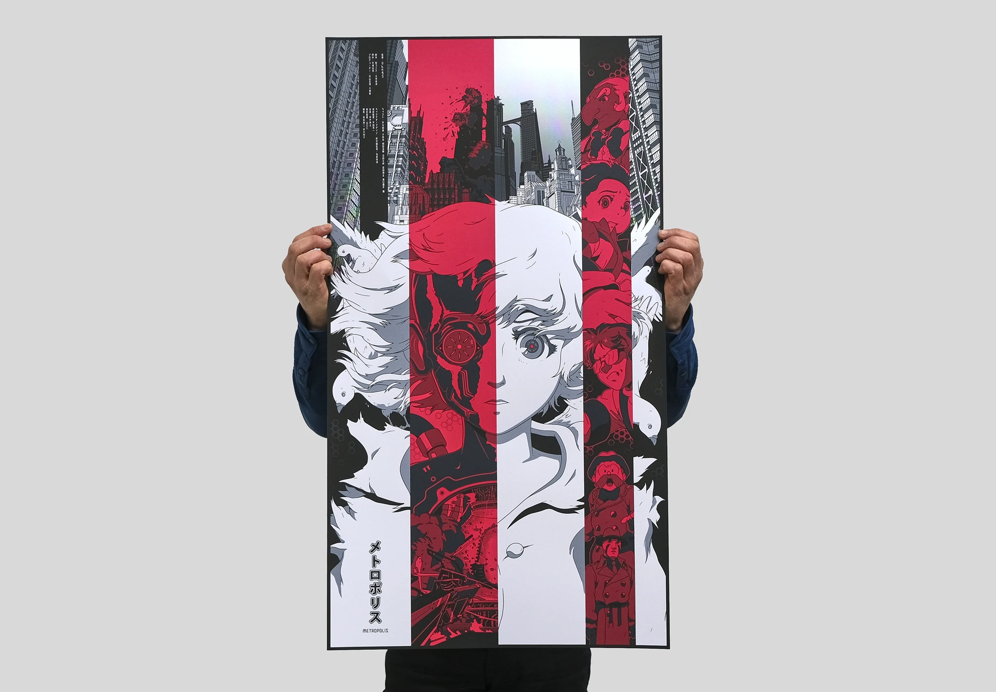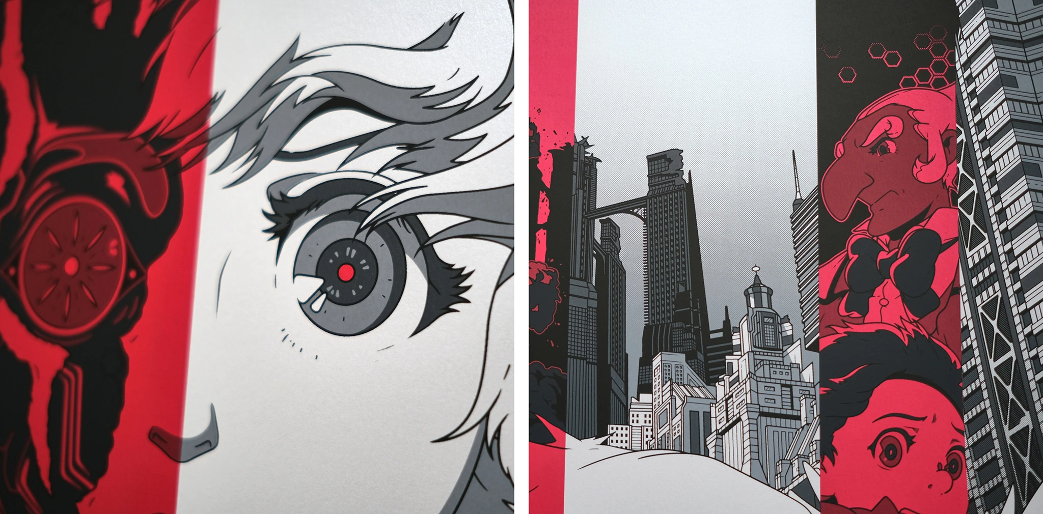 We worked with Ethan back in August of 2020, on a newly iterated screen print edition of his fantastic Perfect Blue artwork. An anime fan through and through, with an impressive illustration style that both draws from and gives back to the genre, Ethan’s follow up screen print is an astonishing evocation of Shigeyuki Hayashi’s (the famed anime director, more commonly known as Rintaro) critically acclaimed reimagining of Fritz Lang’s Metropolis.