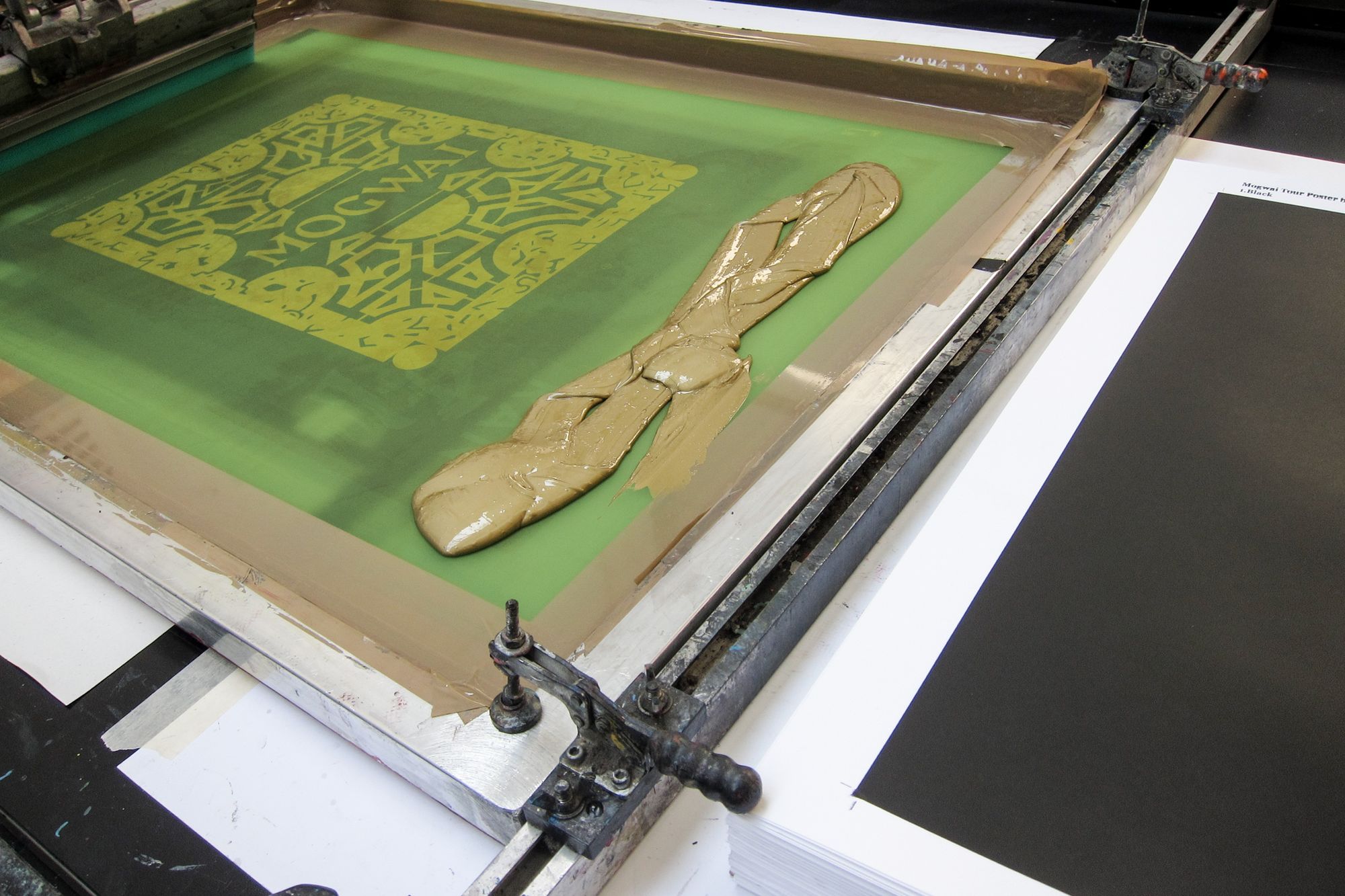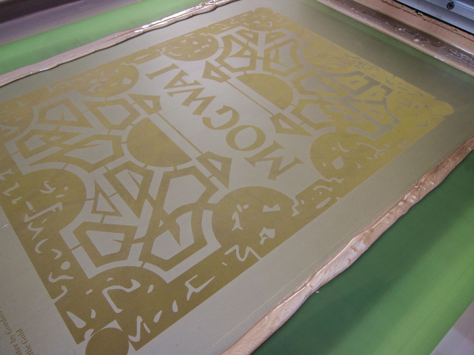 We thoroughly enjoyed screen printing this beautiful edition for Mogwai artwork courtesy of Gordon Reid (Middleboop). Printed in two colours with sumptuous metallic gold, this edition of 150 will be for sale during Mogwai’s upcoming tour. Look out for them!