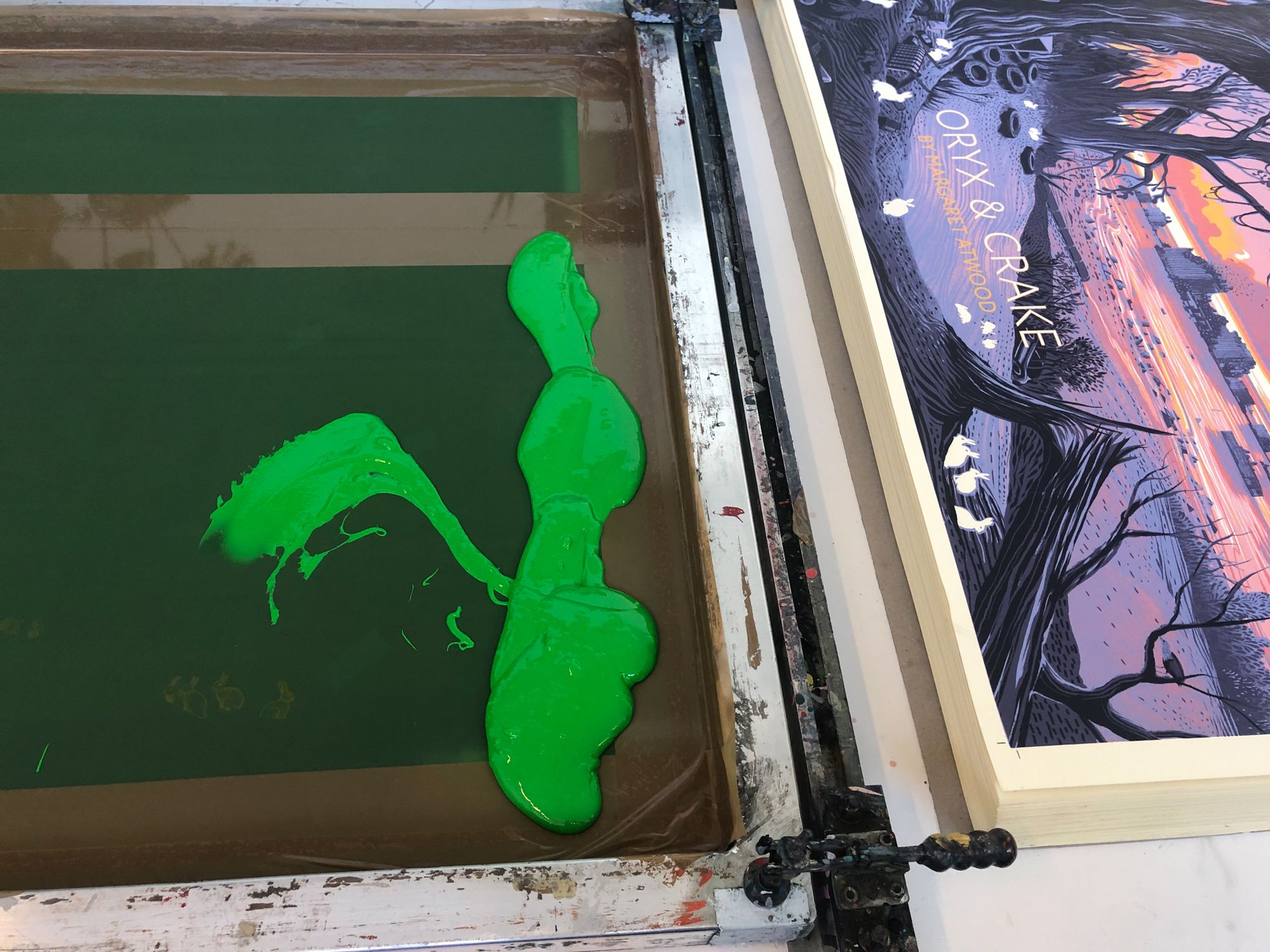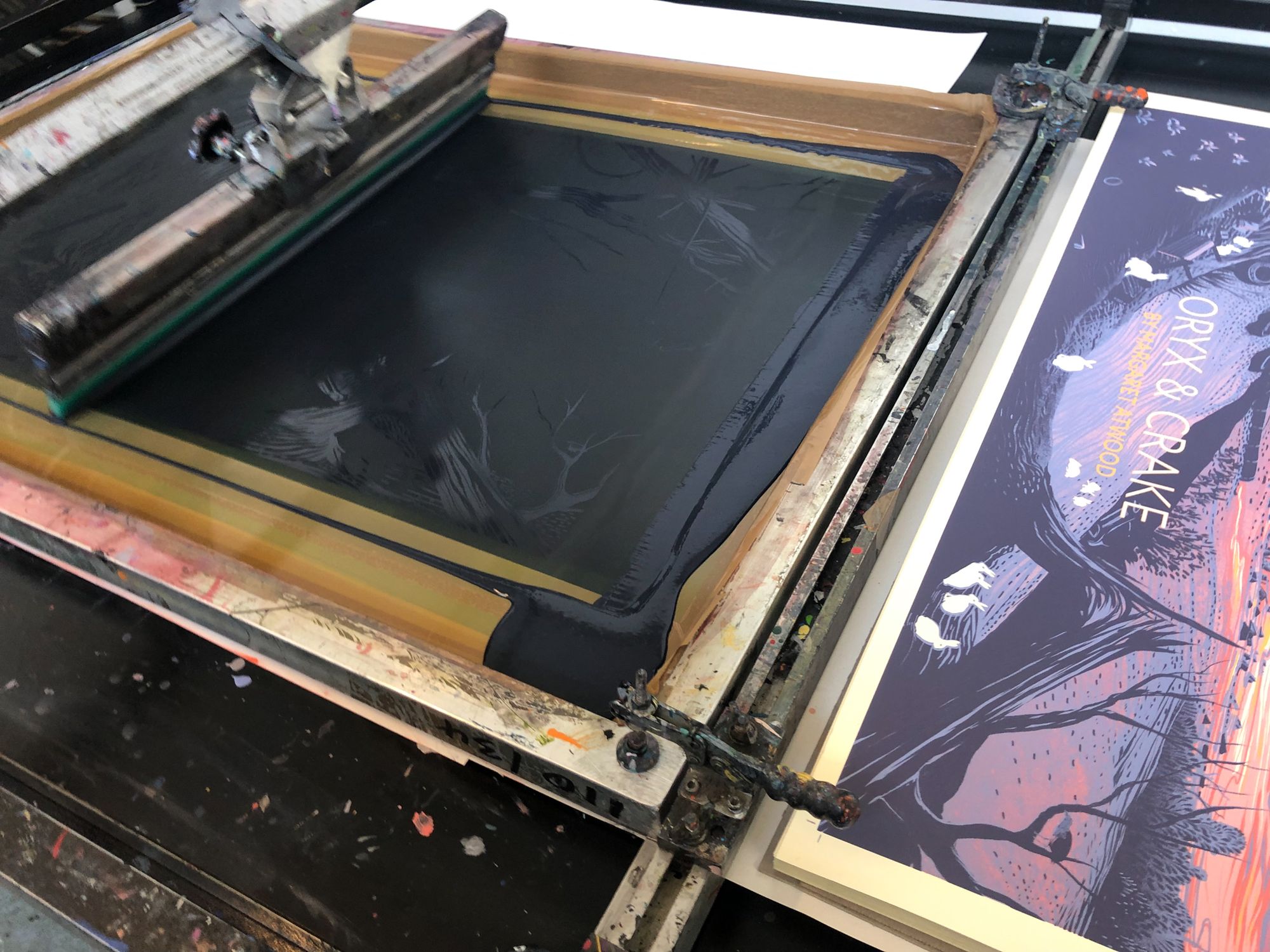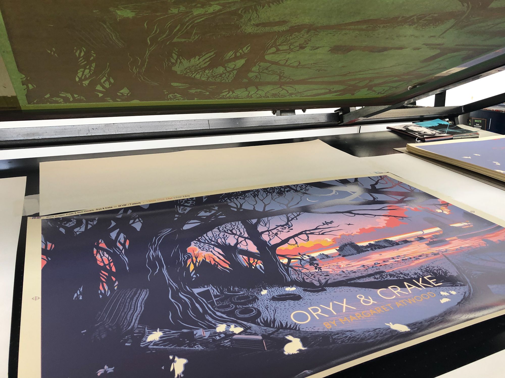 Oryx & Crake is a new edition for Black Dragon Press, screen printed in 7 colours at the White Duck Editions studio.