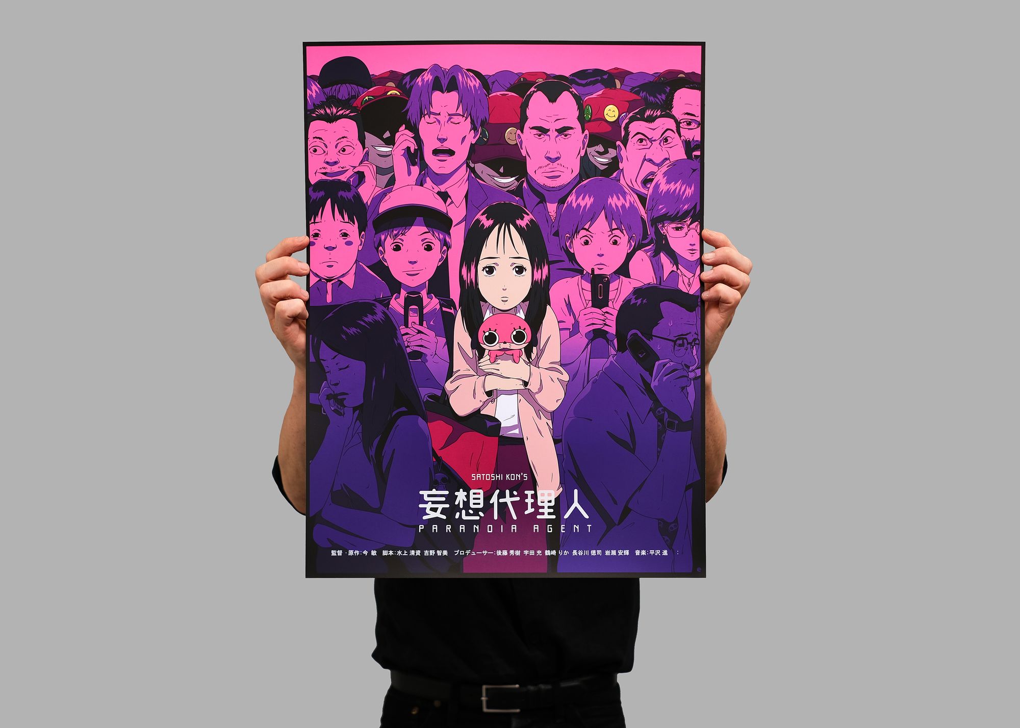 Ethan Sharp set the bar high with his posters for Perfect Blue and Metropolis. With his third release, Paranoia Agent, that trend continues, as he deliveries arguably his most ambitious and complex screenprint yet.