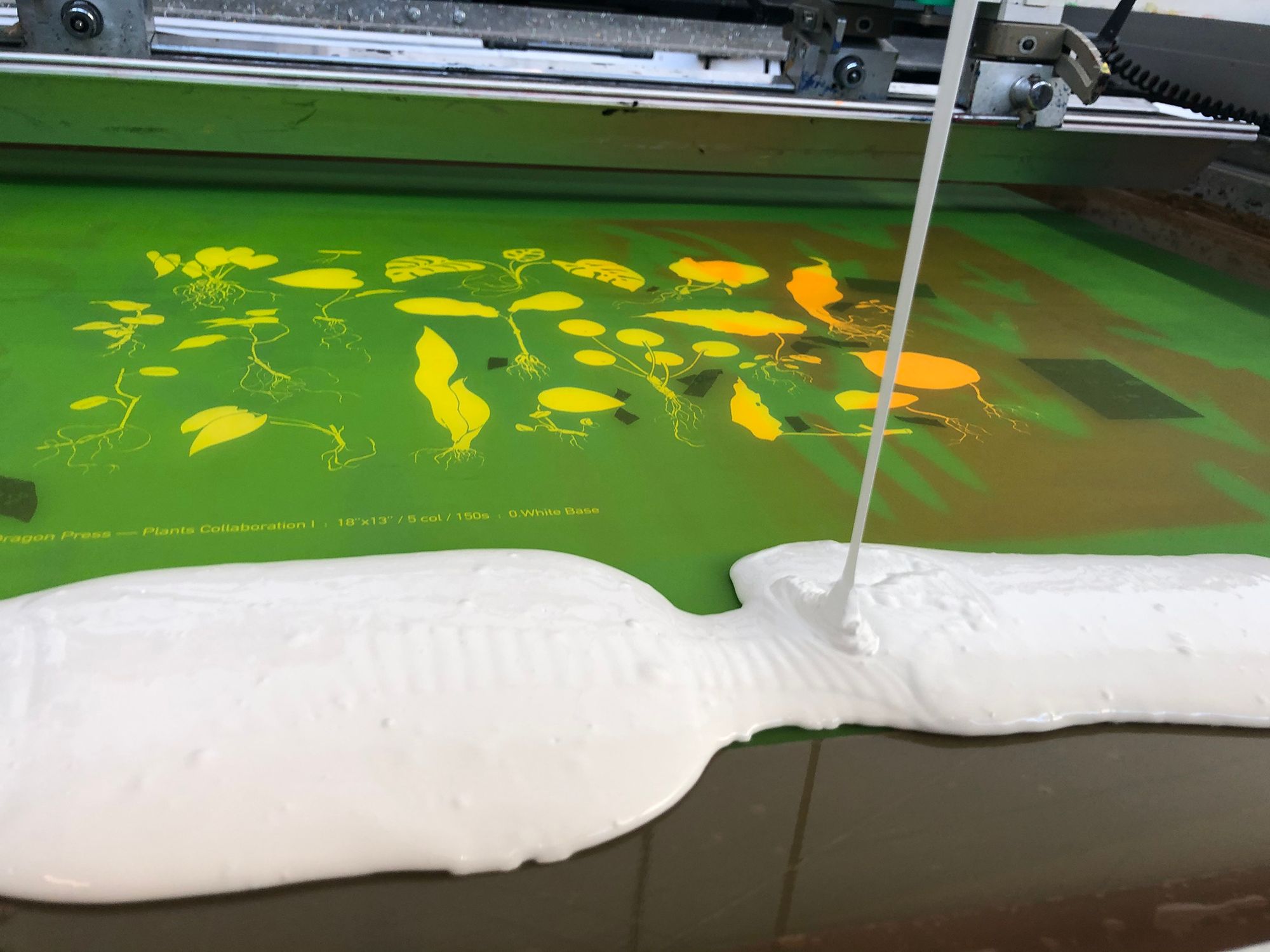 This was a really fun screen print to work on. We had a good conversation with the artist and gallery about how to create the artwork specifically for screen print, and then Choo came back with a very beautifully layered piece that uses the interaction of translucencies throughout.
