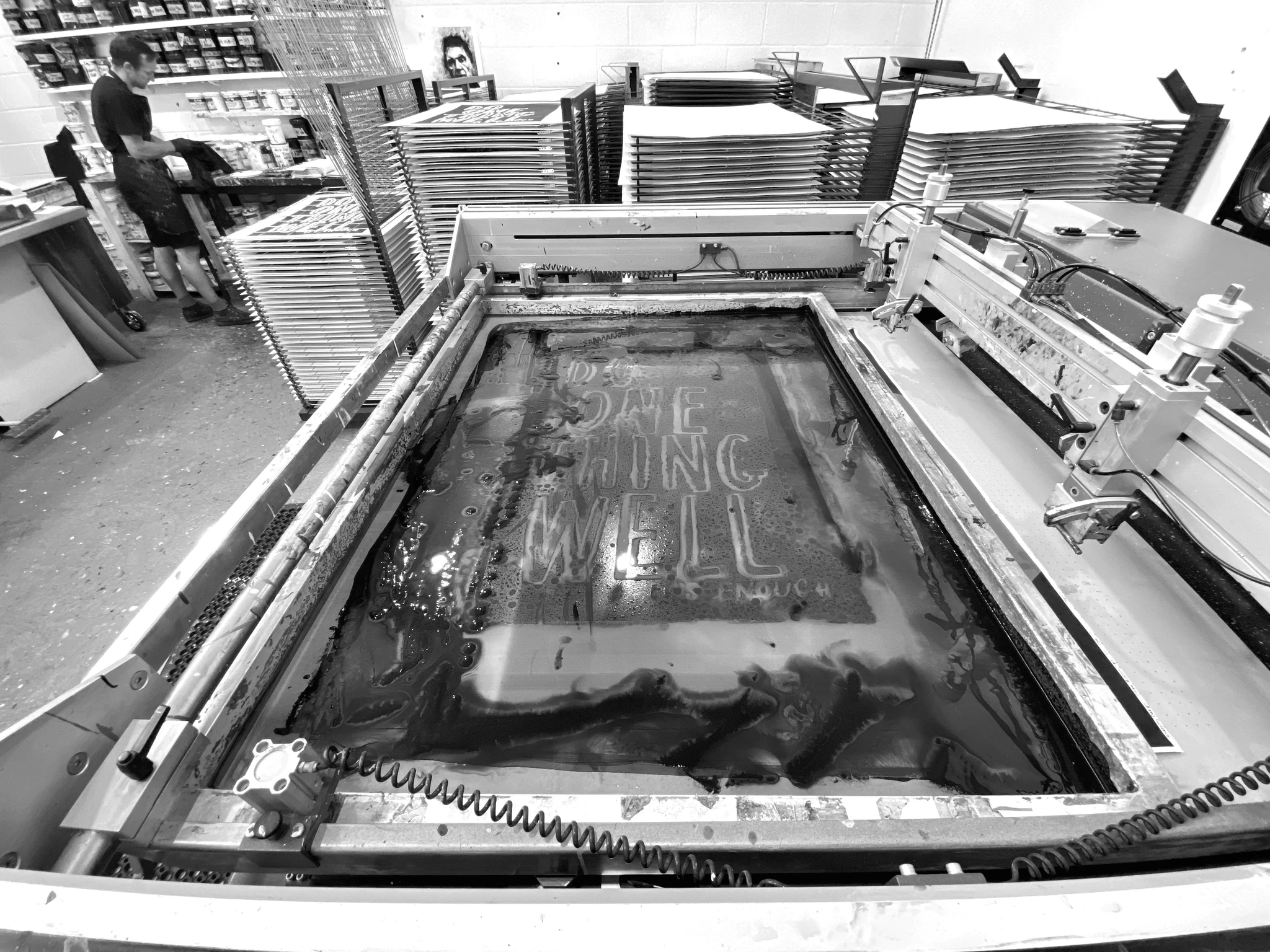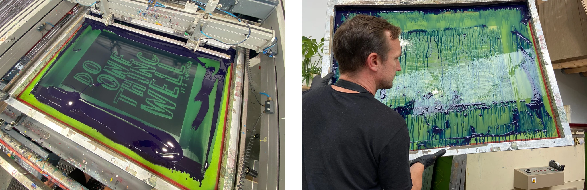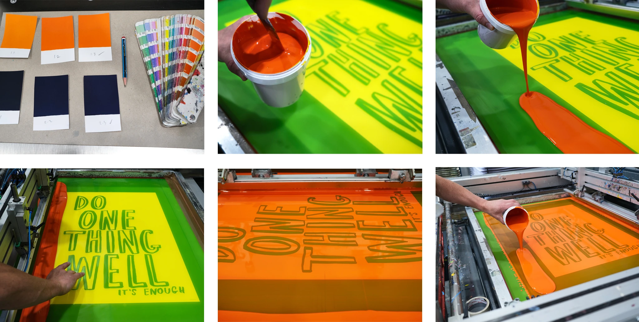 The Do One Thing Well 2nd edition was screen printed here at the White Duck Editions studio. This time created in two colourways — popping Pantone orange 1505c & rich Pantone denim blue 4146c.