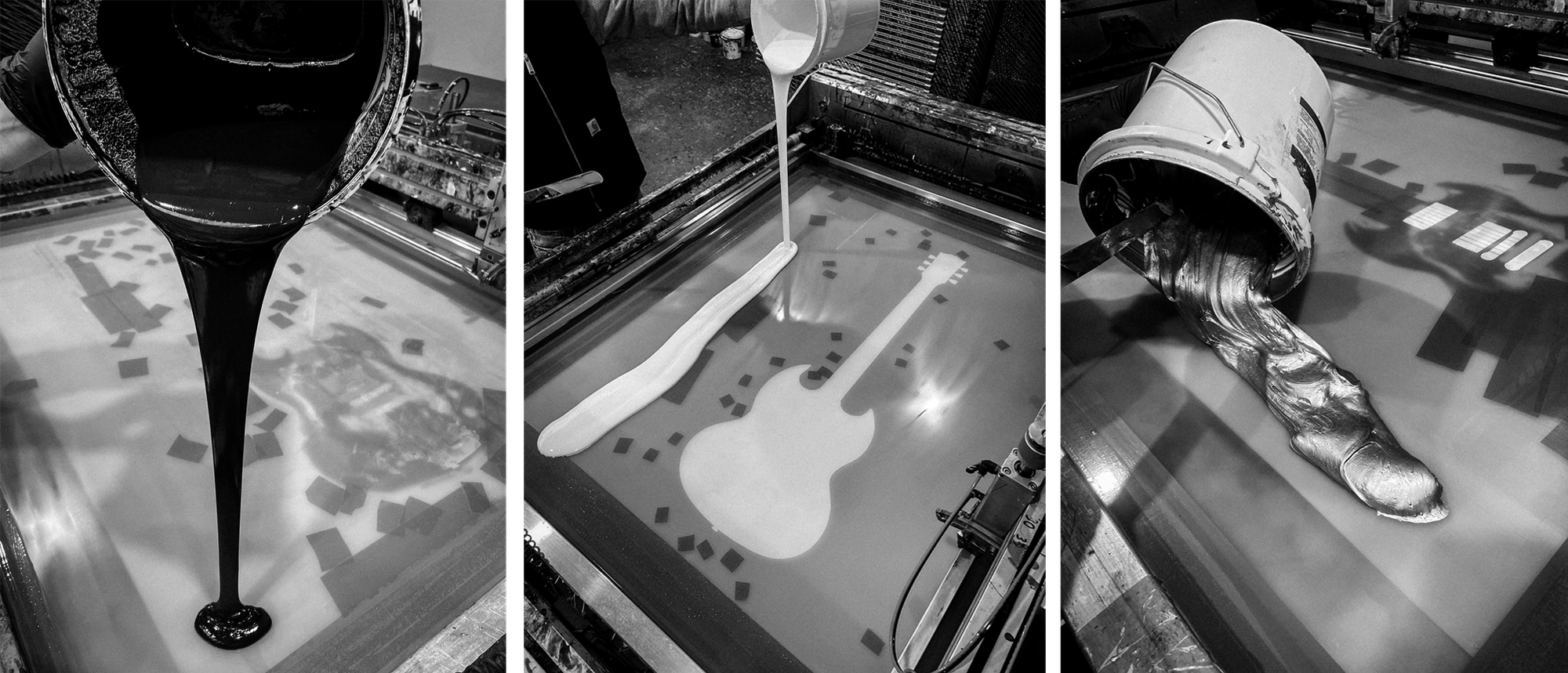 - A lustrous metallic silver that beautifully highlights the guitar's pickups, printed using Lascaux Studio Bronze ink.