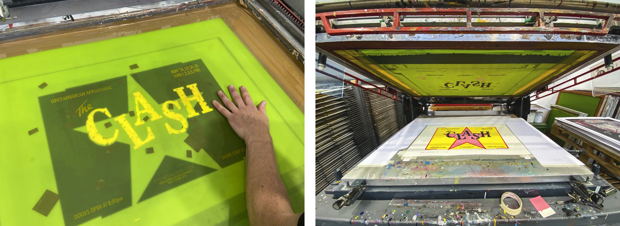 The Clash, Bond International was screenprinted at the White Duck Editions studio, in a 3 colour limited edition of 100 + AP’s. Printed on beautiful 310gsm Somerset Tub-sized Satin paper, and hand-numbered in the studio, these prints are now available from the official Clash Uk store.
