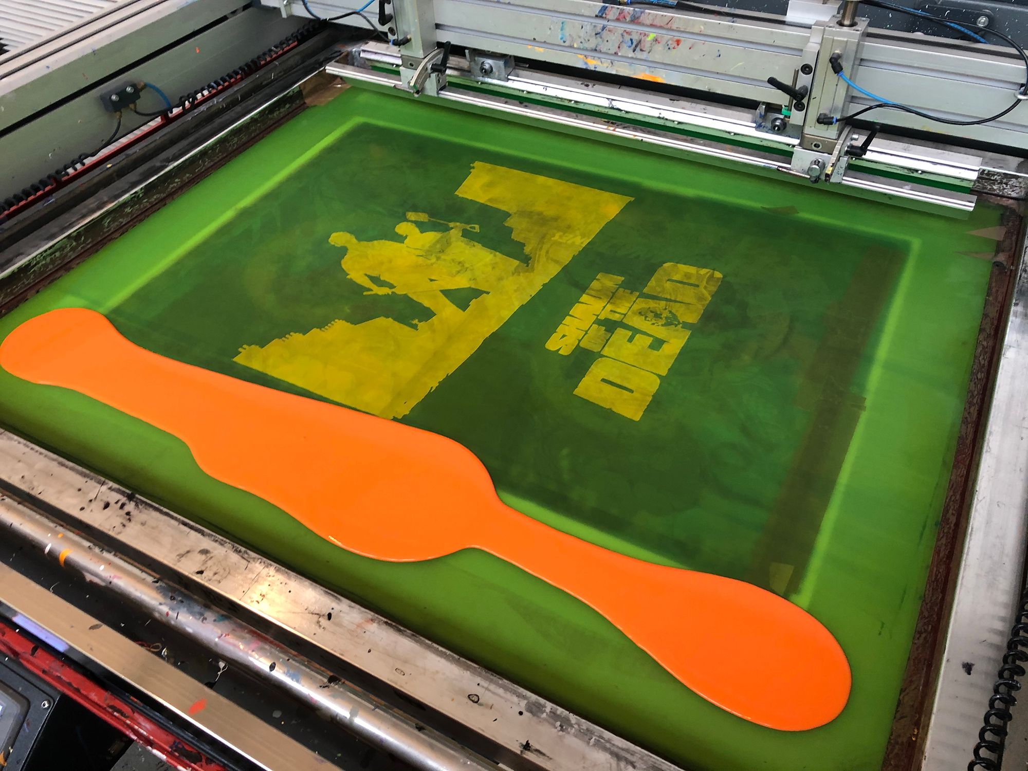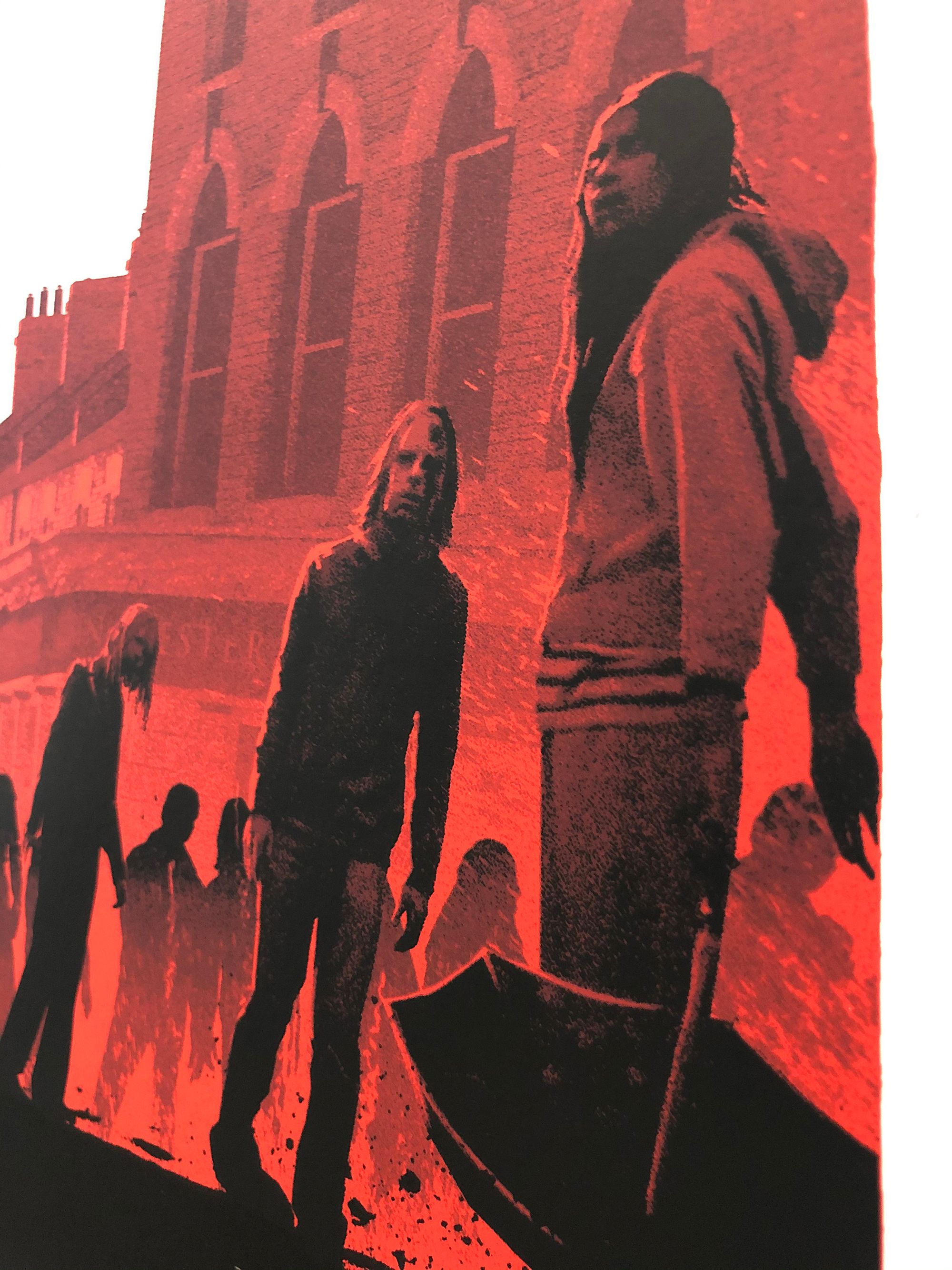 After we finished screenprinting The World’s End, it was fascinating for us to bring the previous two prints out of the archive and sit all three side-by-side, rephotographing them in the process. For us, the posters represent a development arc in terms of what we can achieve on the print floor, but the poster artworks also seem to demonstrate a development in the technical prowess of Matt Ferguson as an artist. James addressed this nuanced development in the work, when answering our next question.