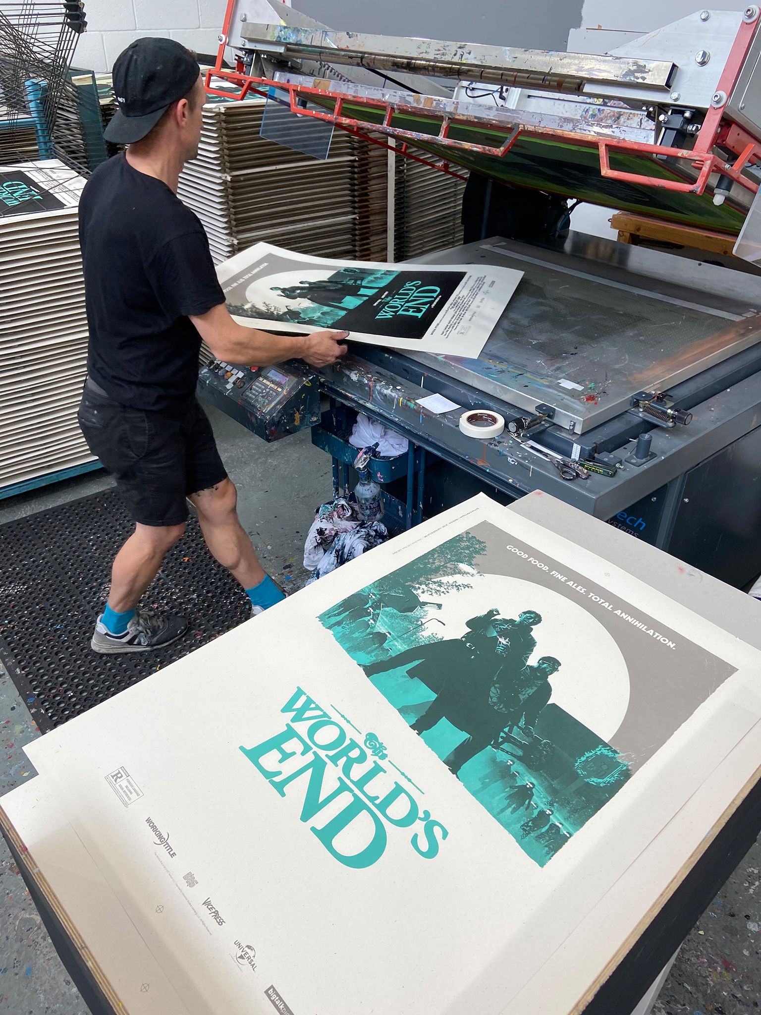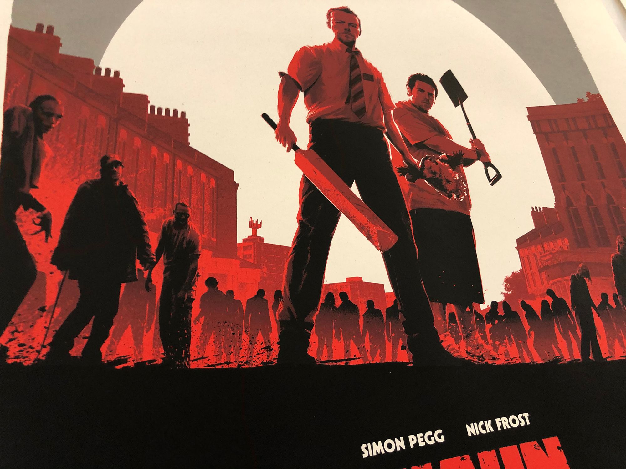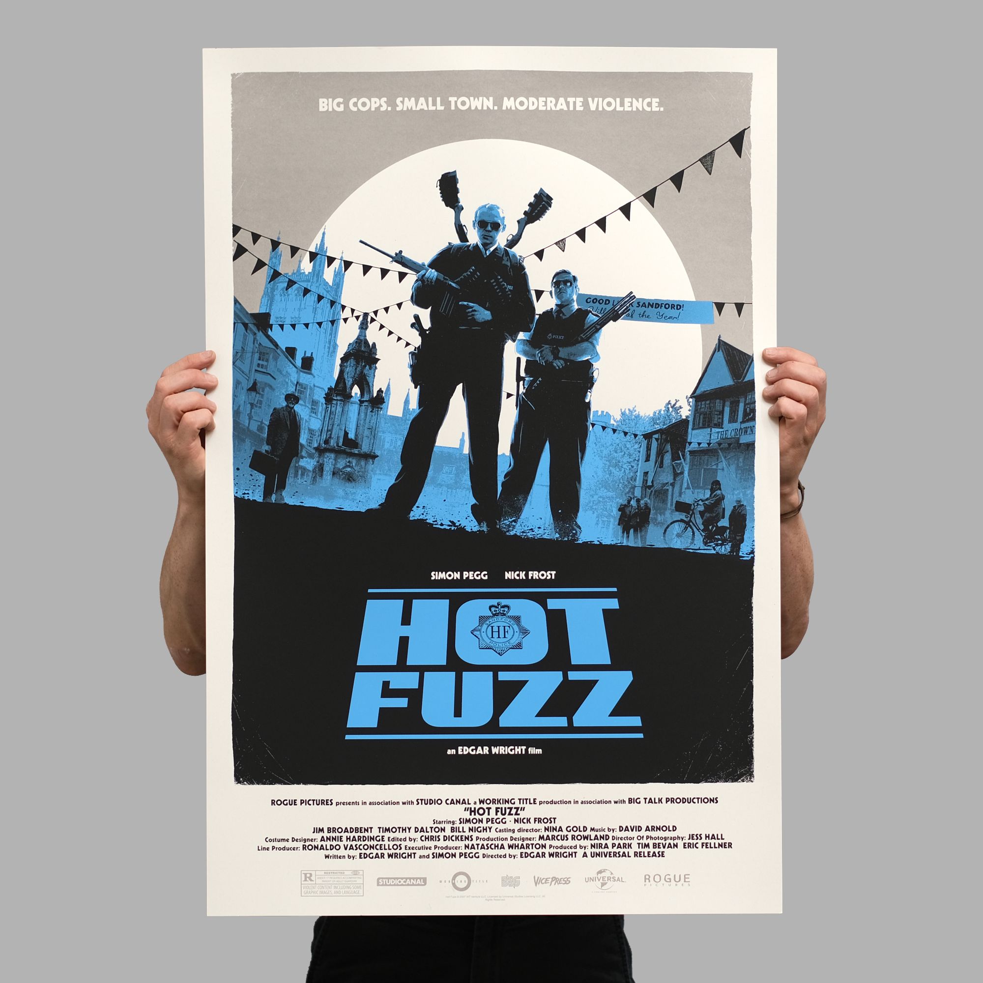 The second instalment, Hot Fuzz, landed in early 2020, before a protracted sign-off delay, attributed to Simon Pegg’s likeness, held The World’s End in limbo until late spring of 2021. The likeness issue resolved itself, with the poster artwork moving from approved to rejected and back to approved, all internally at the studio, but it meant that fans of the series had to wait patiently before the final poster hit the press.