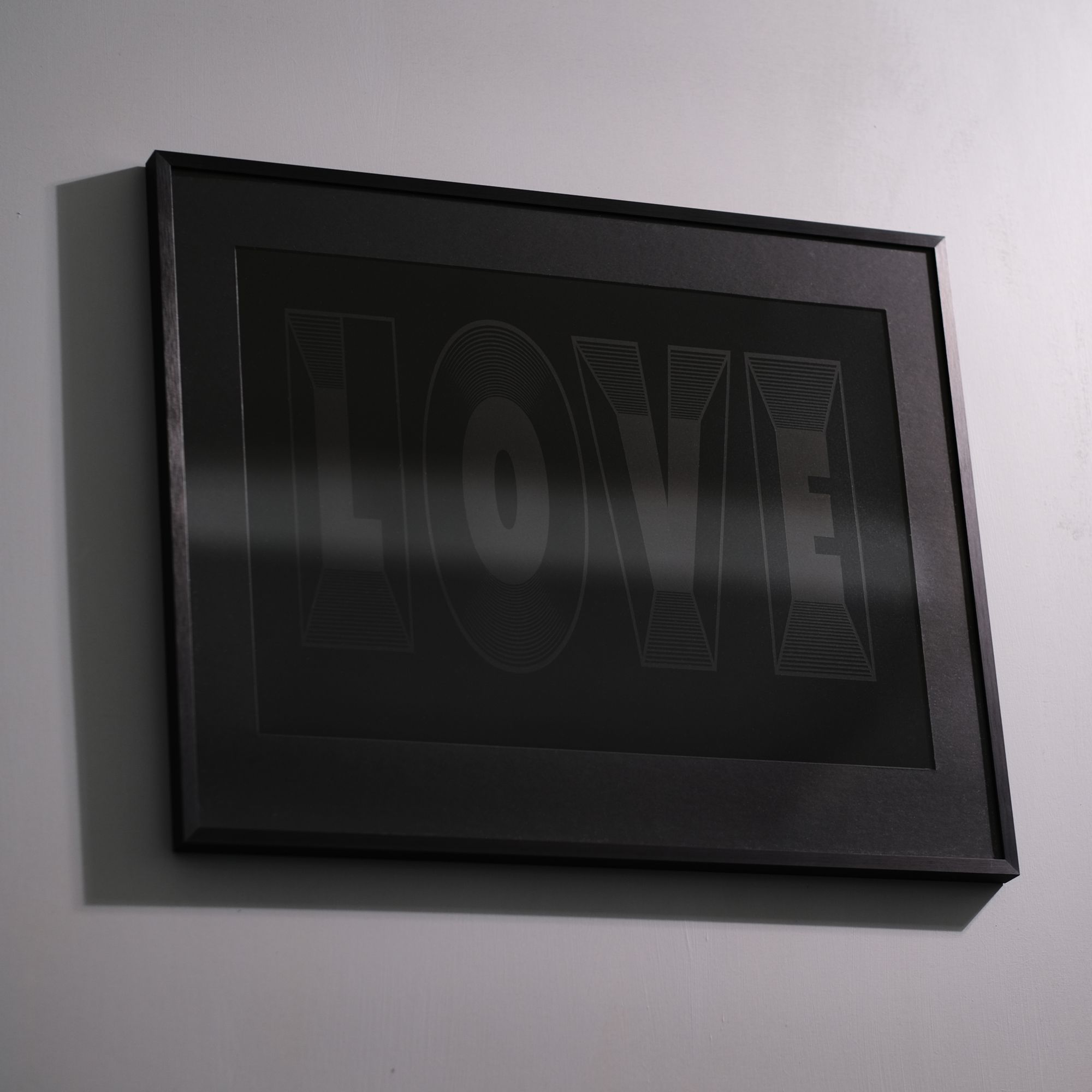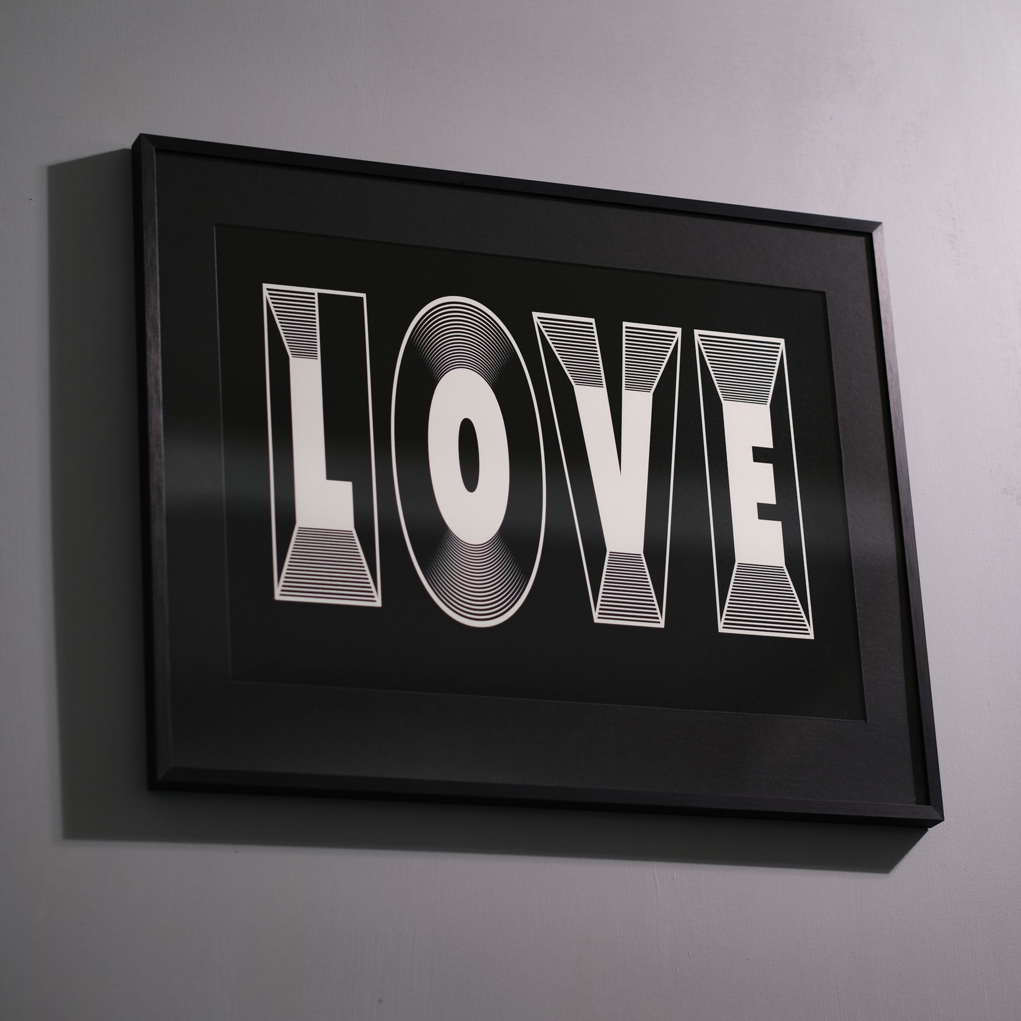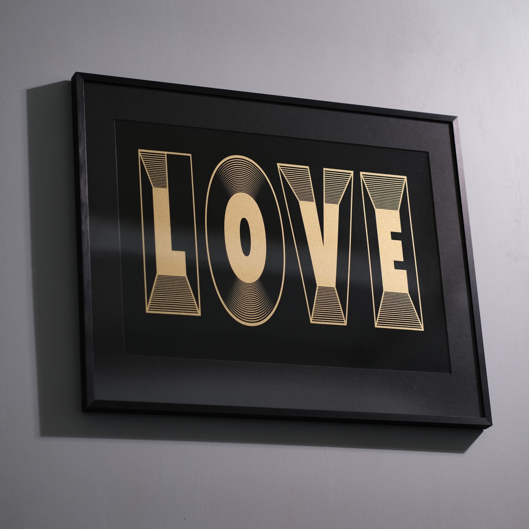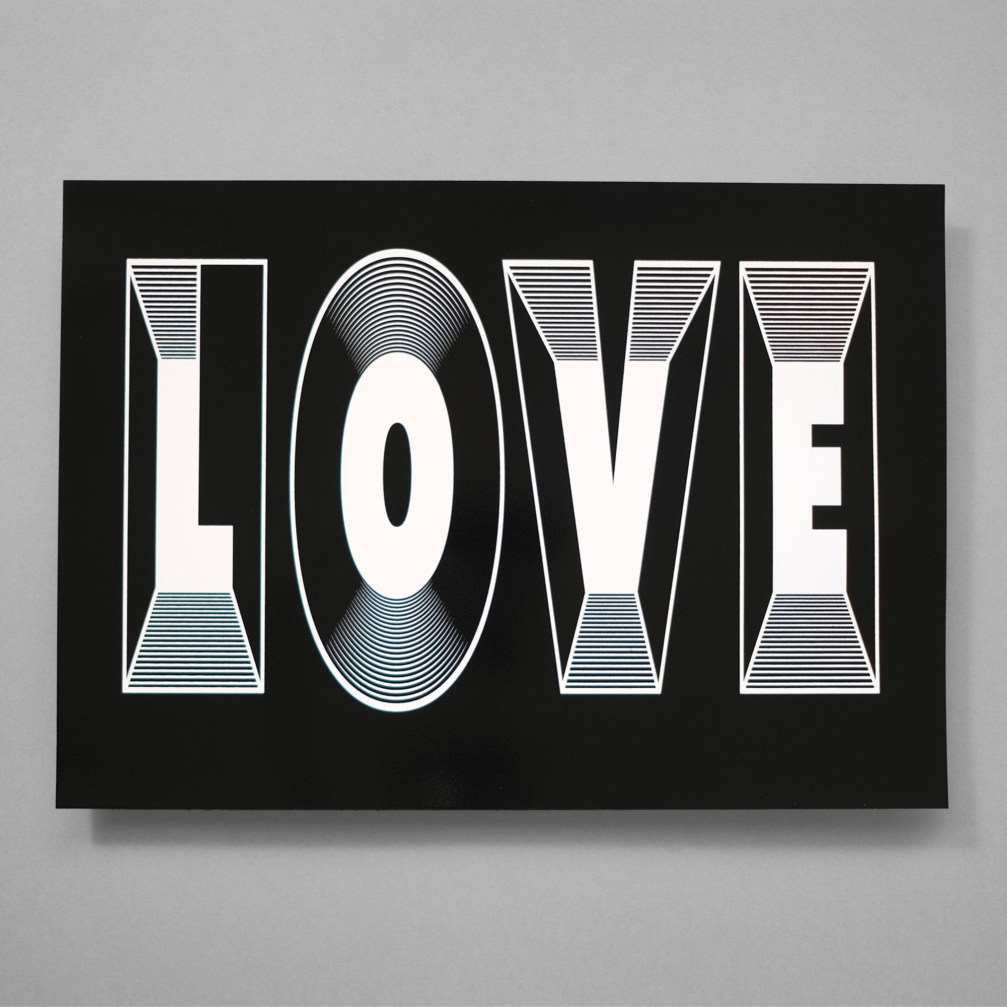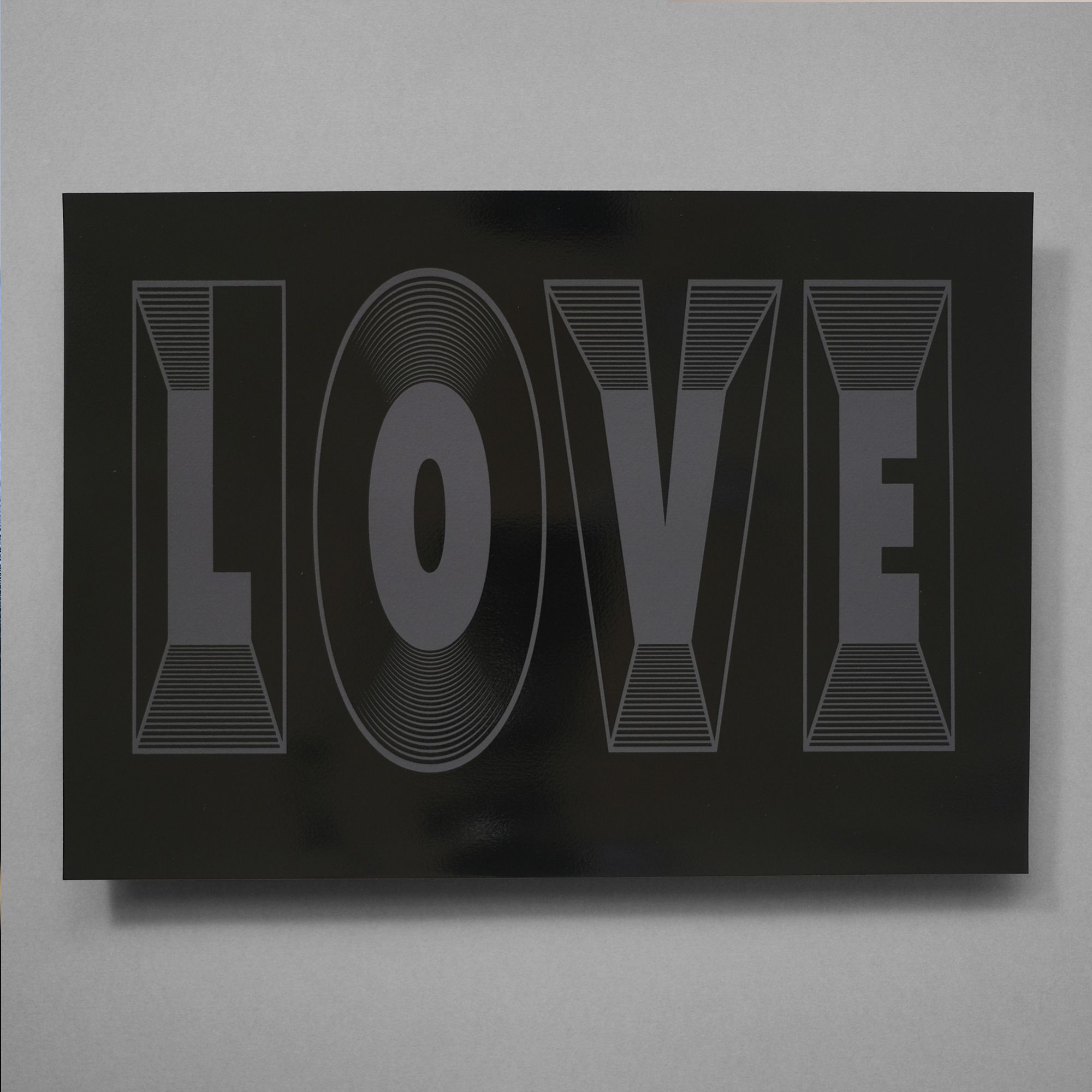 The typography was strong on-screen, but through the screen print process, we were able to elevate it to another level. Printing with matte colours (and one metallic ink) as a base, we then layered heavy high-gloss enamel black ink to create a thoroughly constructed and built looking screenprint. Super tactile and with brilliant depth, it is a print that captures the light and causes the word LOVE to move in and out of focus, regularly leaping from the paper toward the viewer.