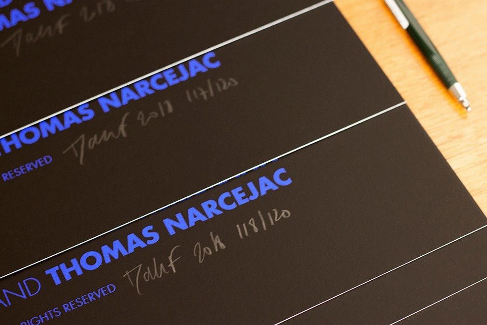 There are two editions. Red is titled ‘Kim’, whilst blue is titled ‘James’. Both were printed at 24”x36” in limited editions of 120, and have been signed and numbered by the artist.