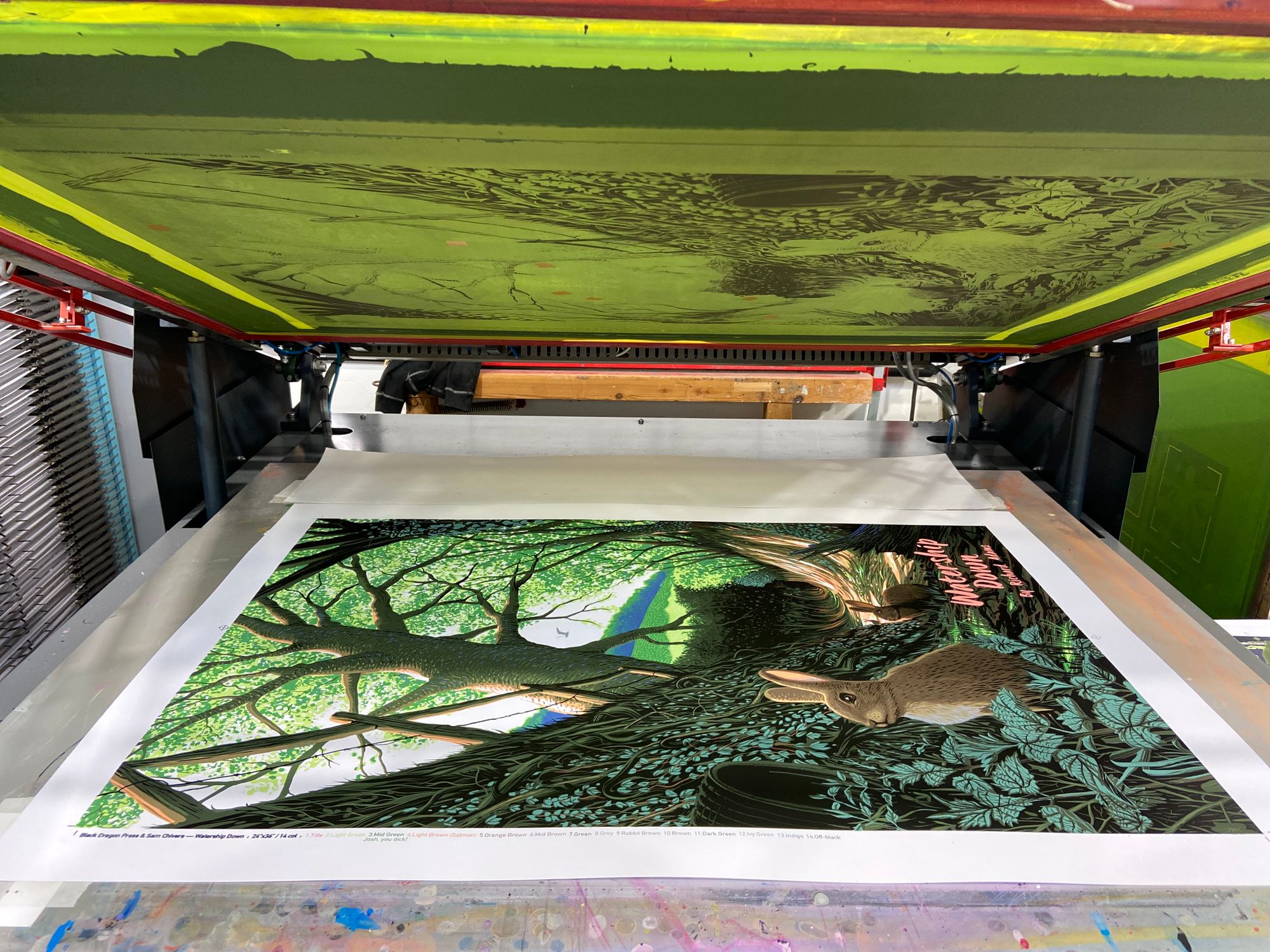 Watership Down has twice the colours of Oryx & Crake—a total of 14—and has been printed at the same impressive 24”x36”. Here’s hoping that the years ahead see more collaborations between this artist and gallery.
